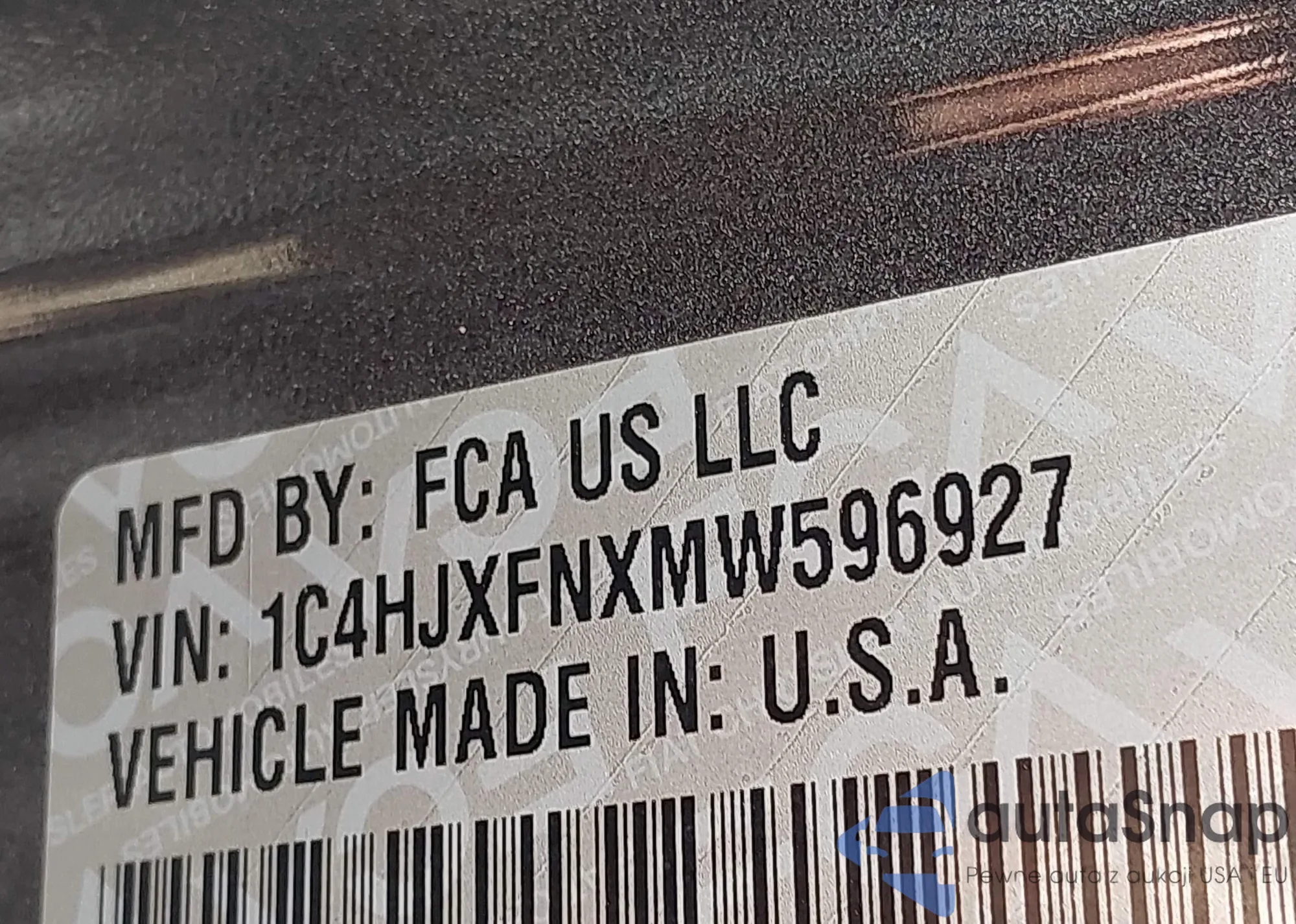 • VIN 1C4HJXFNXMW596927