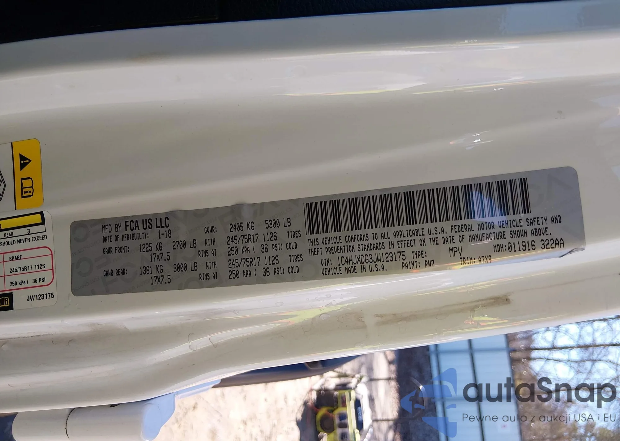 • VIN 1C4HJXDG3JW123175