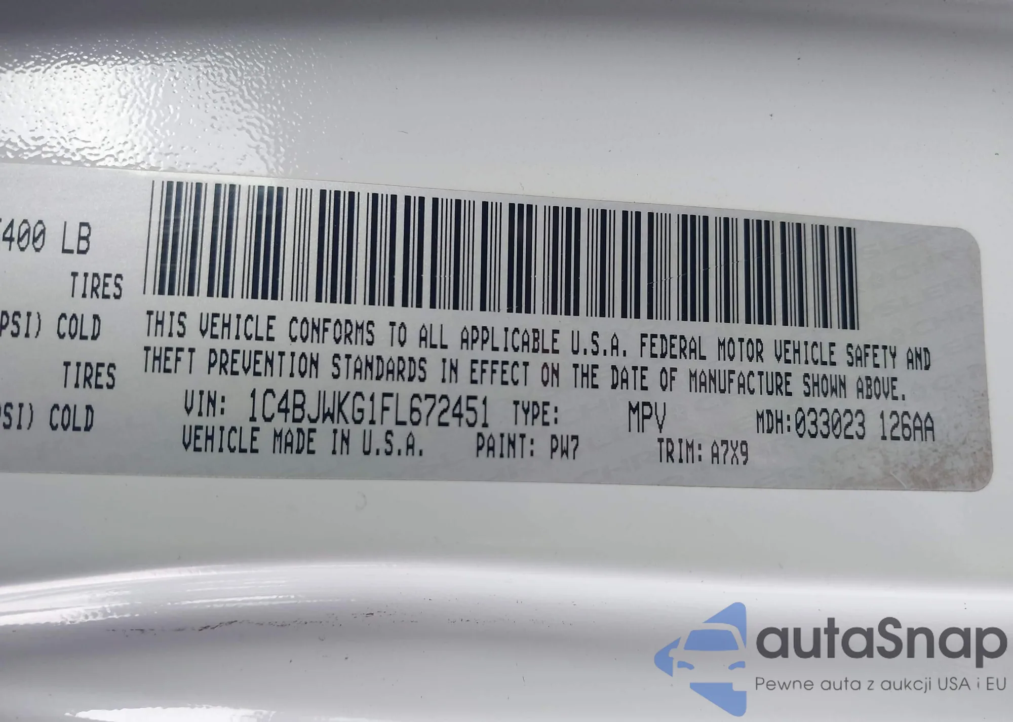 • VIN 1C4BJWKG1FL672451