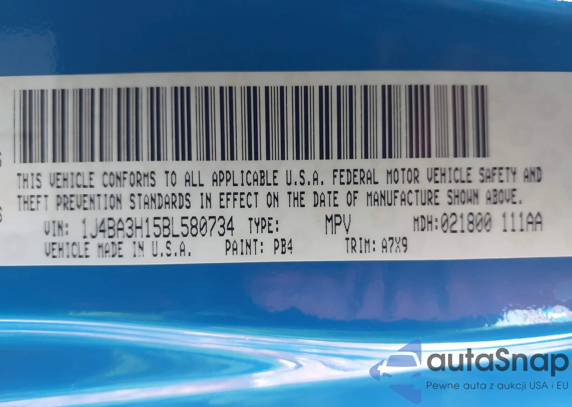 • VIN 1J4BA3H15BL580734