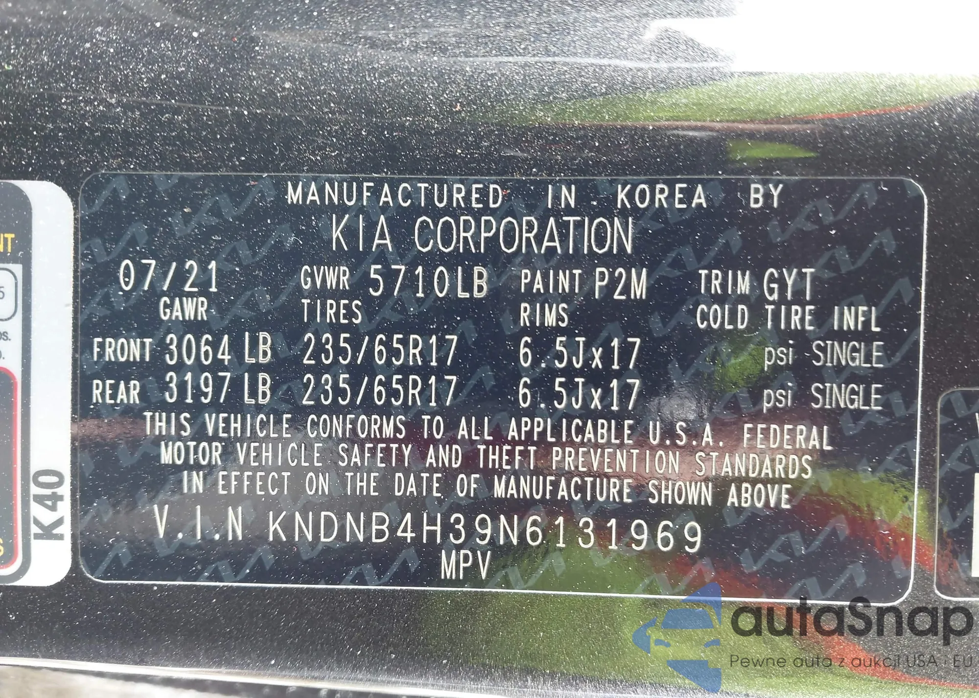 • VIN KNDNB4H39N6131969