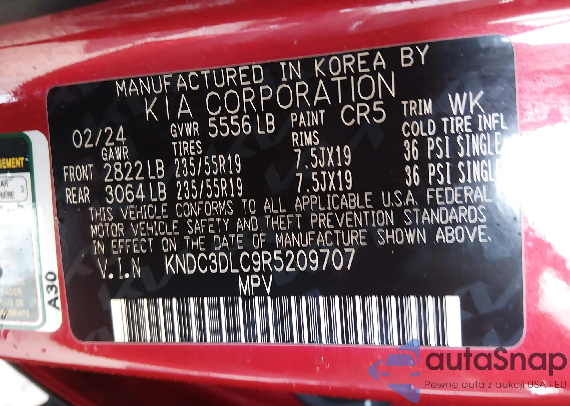 • VIN KNDC3DLC9R5209707