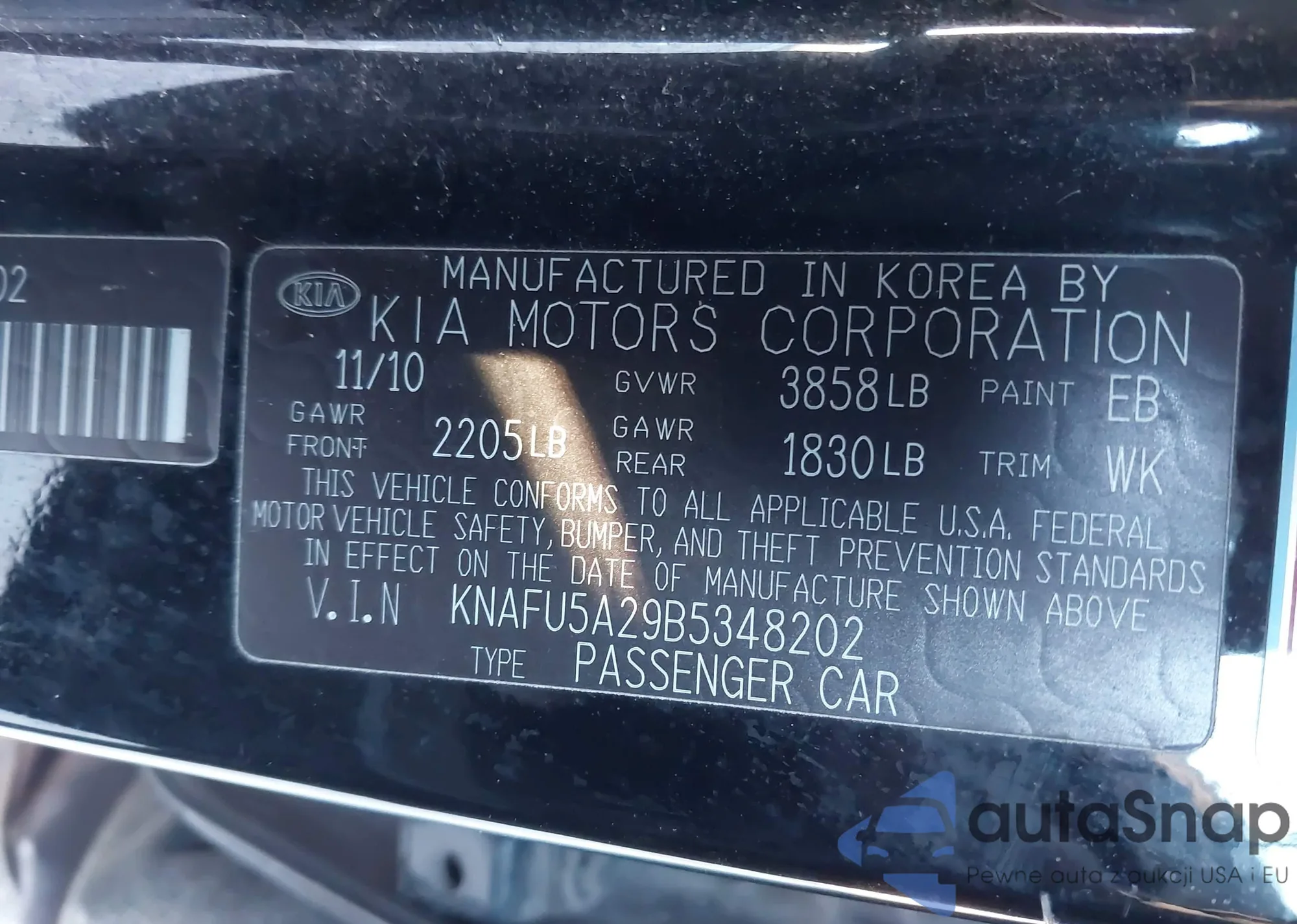 • VIN KNAFU5A29B5348202