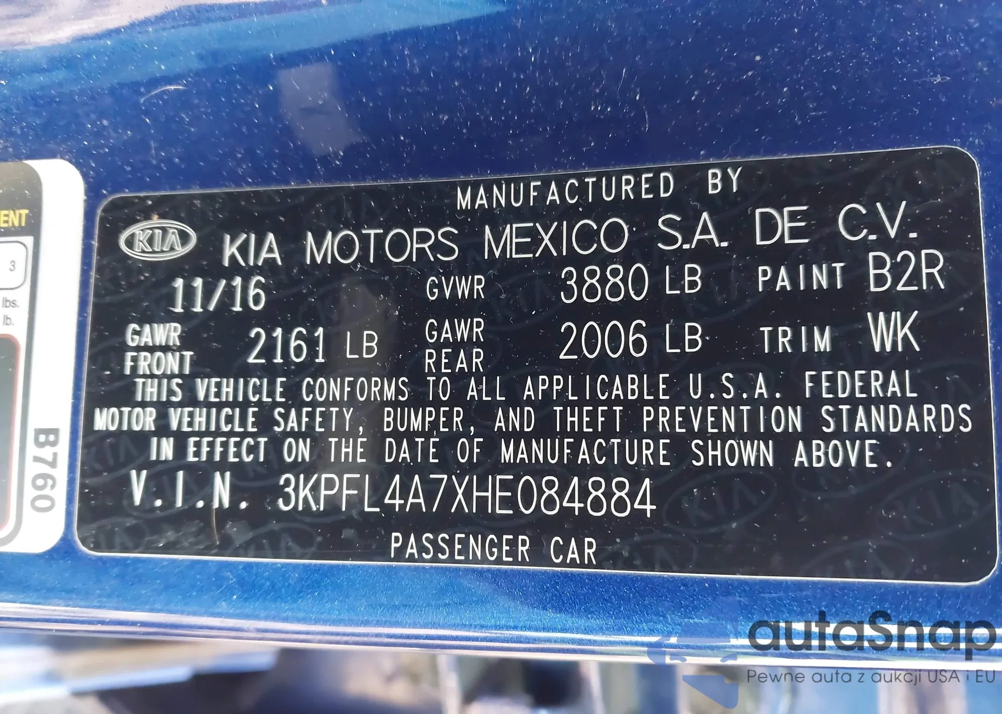 • VIN KNAFX5A84E5177326