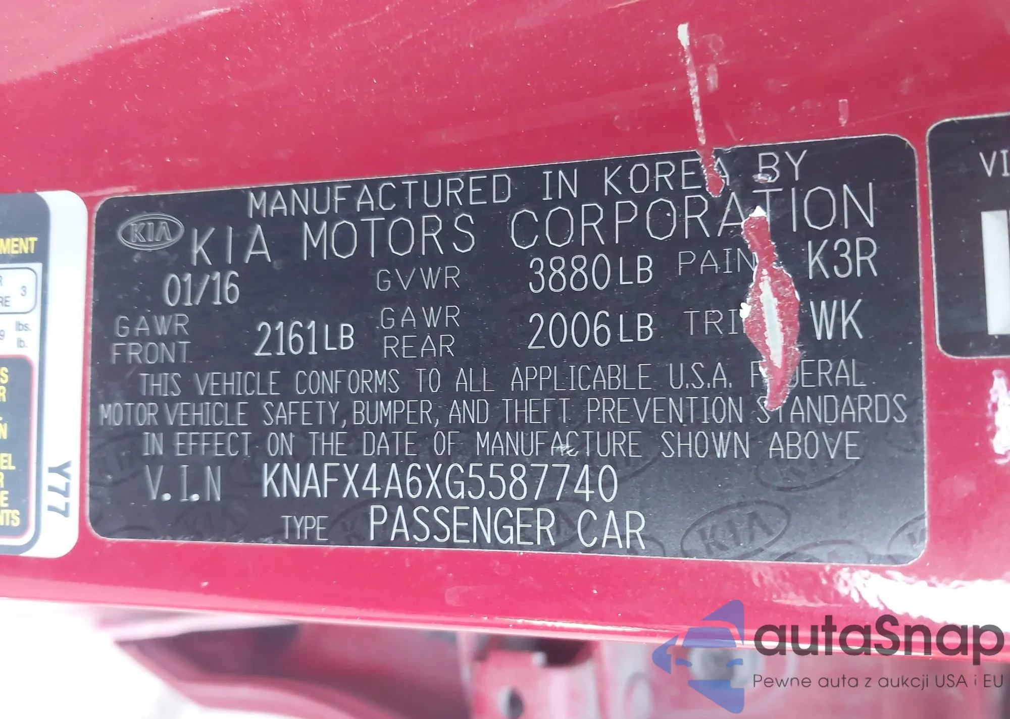 LOT: 44190144 VIN: KNAFX4A6XG5587740