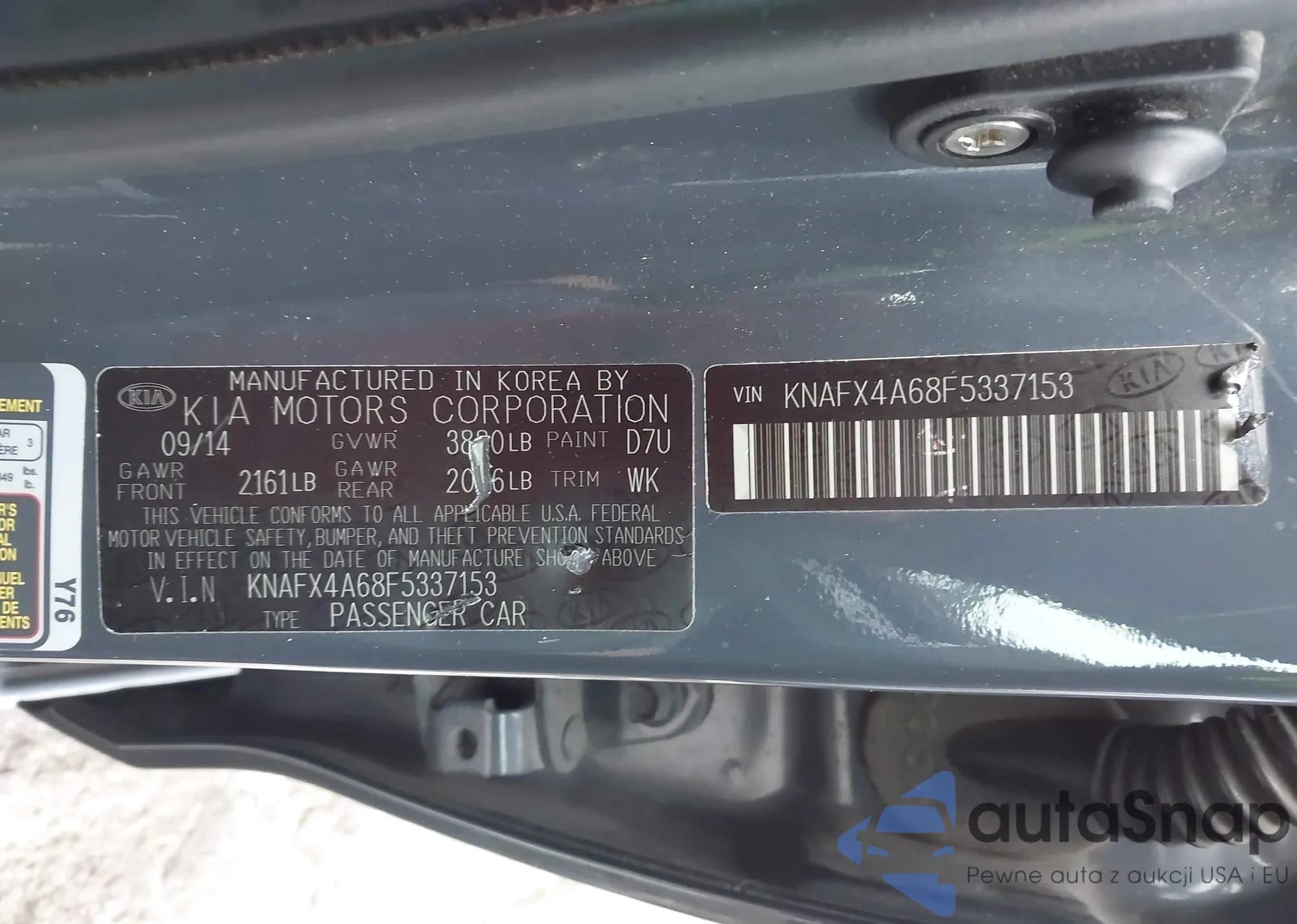 LOT: 44281721 VIN: KNAFX4A68F5337153