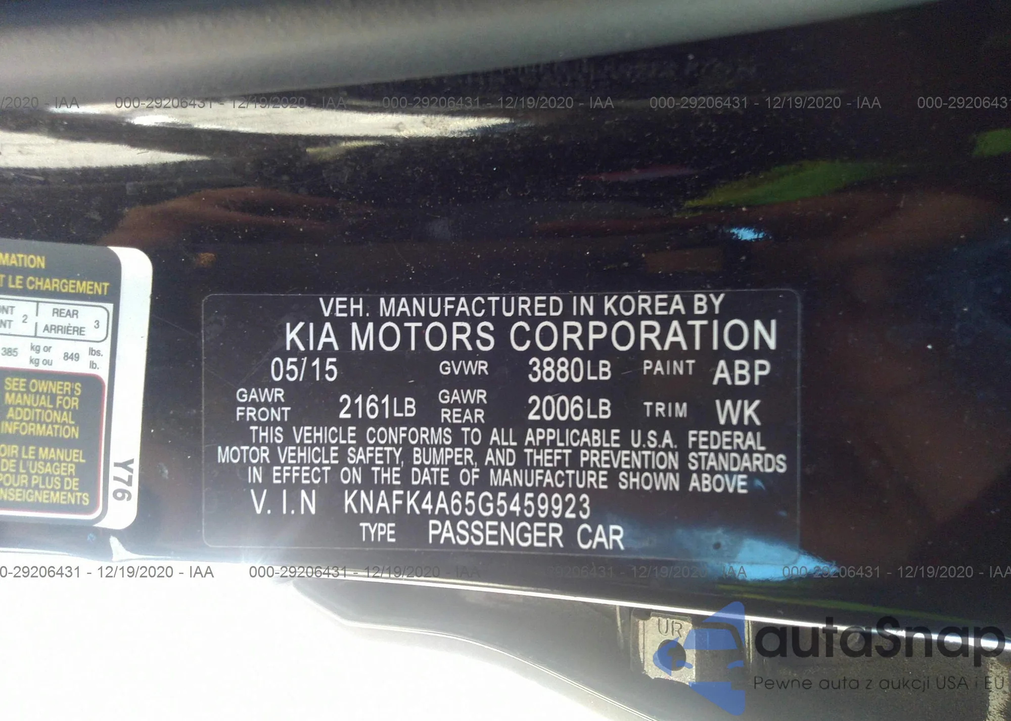 LOT: 29206431 VIN: KNAFK4A65G5459923