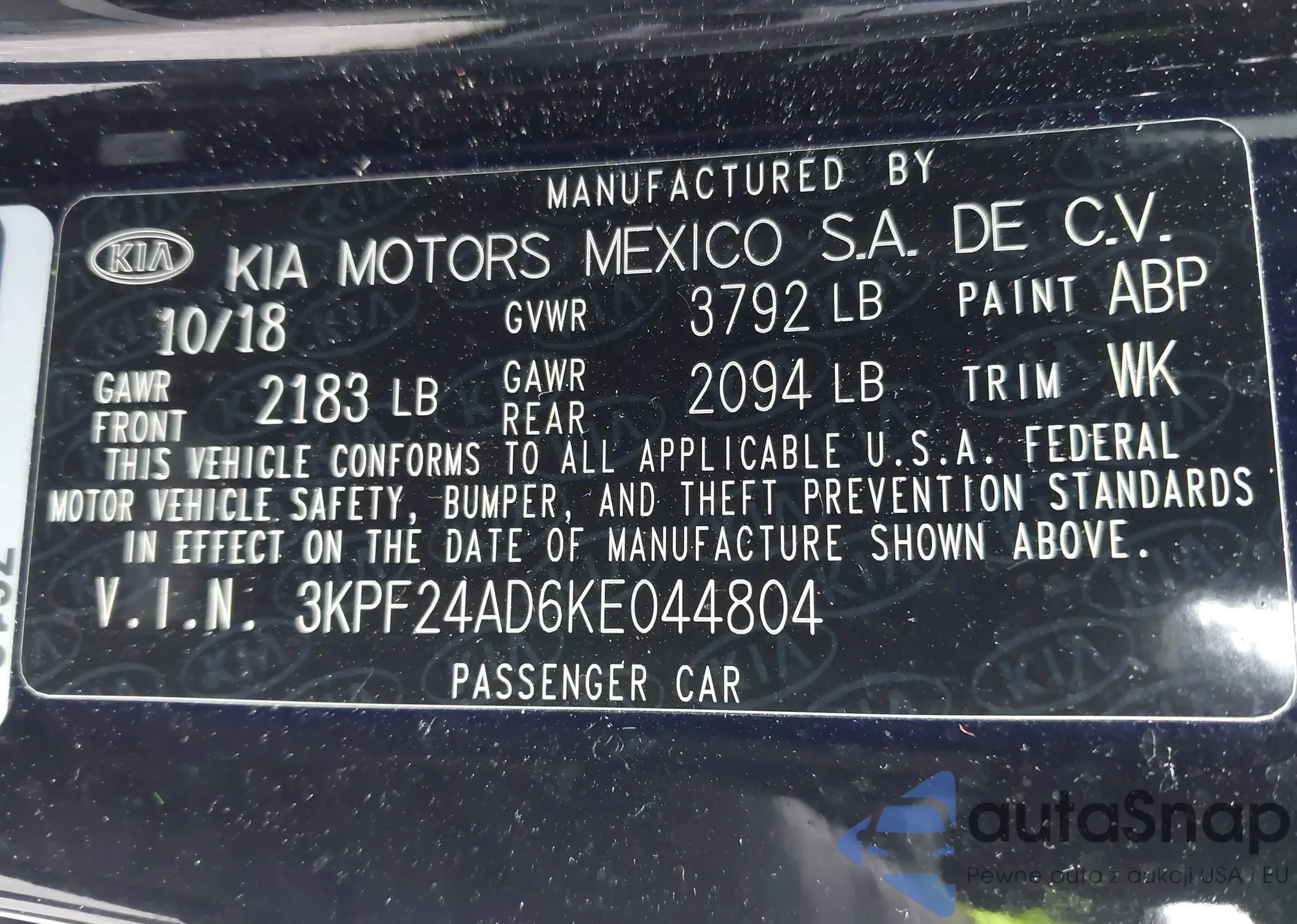 • VIN 3KPF24AD6KE044804