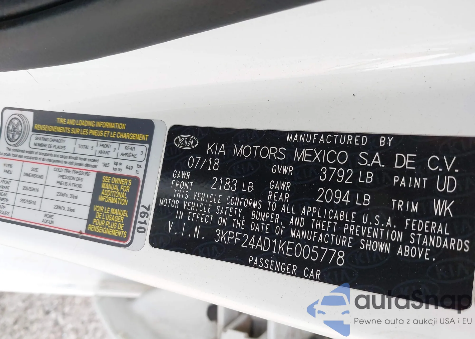• VIN 3KPF24AD1KE005778