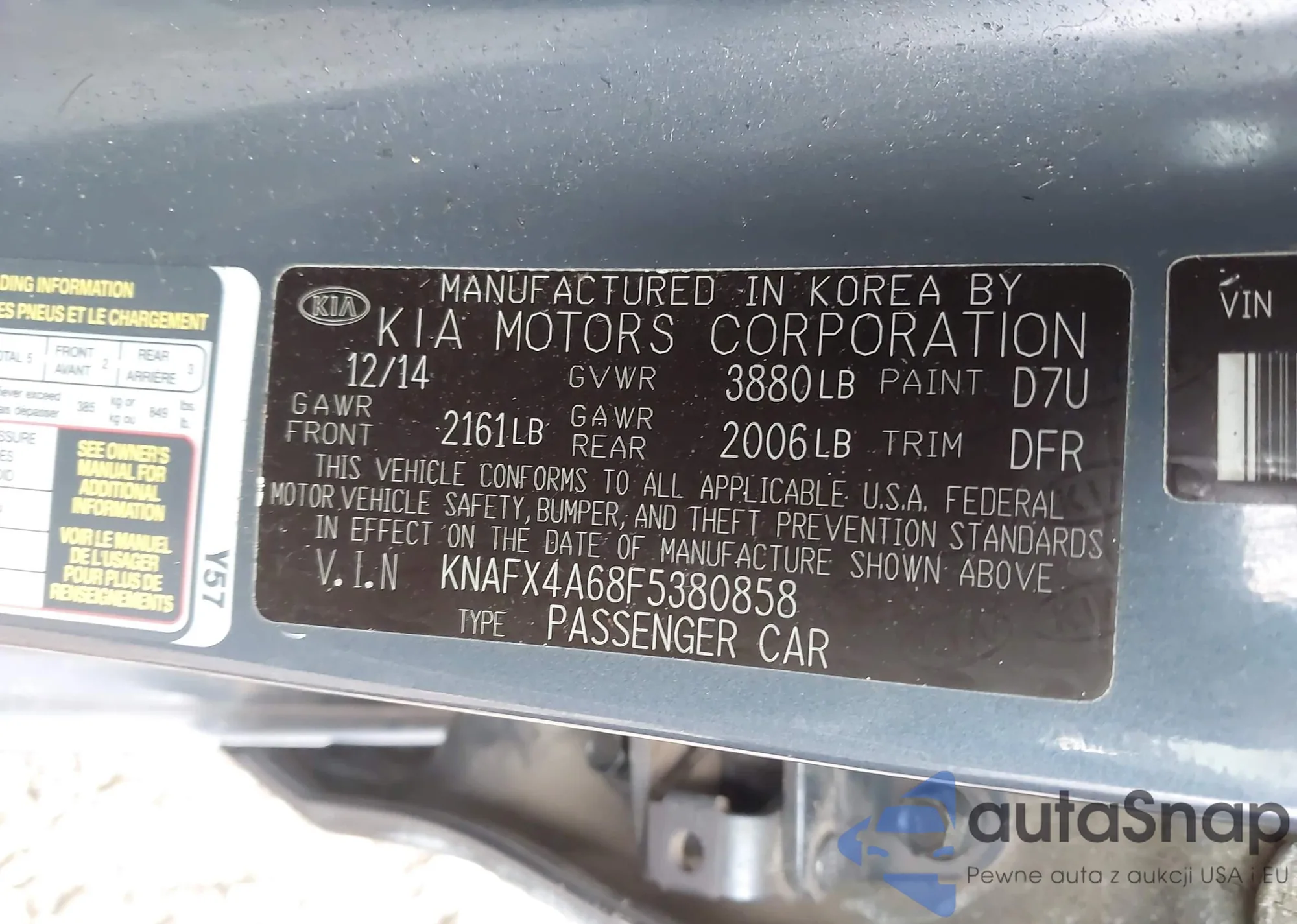 LOT: 43614387 VIN: KNAFX4A68F5380858
