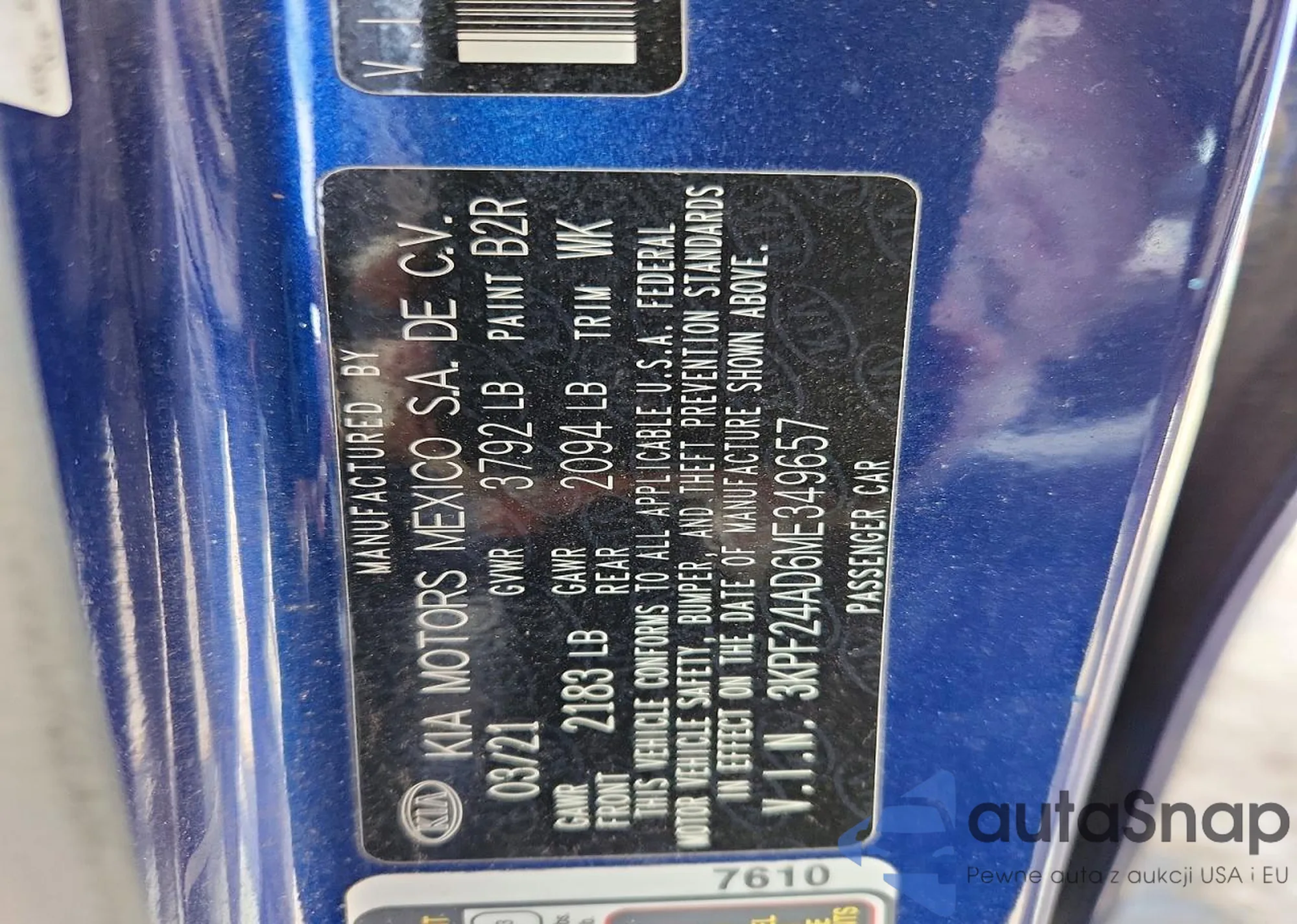 • VIN 3KPF44AC9ME291058