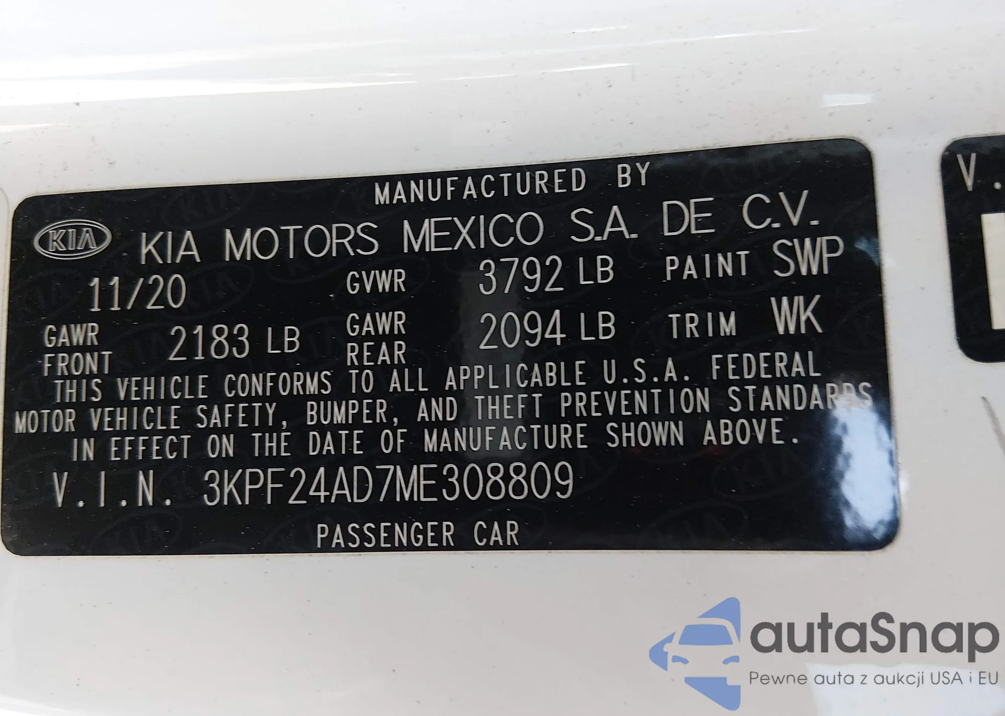 • VIN 3KPF24AD7ME308809