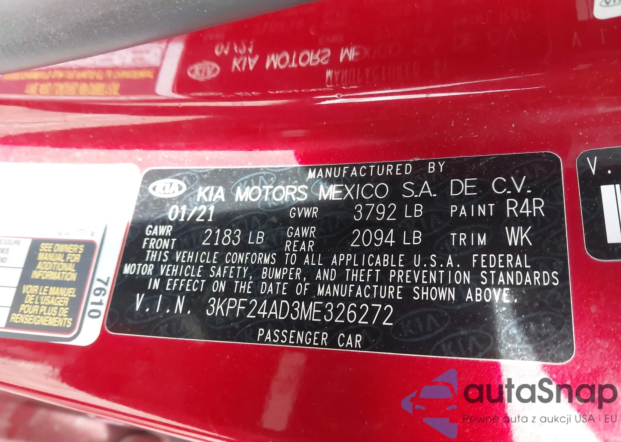 • VIN 3KPF24AD3ME326272
