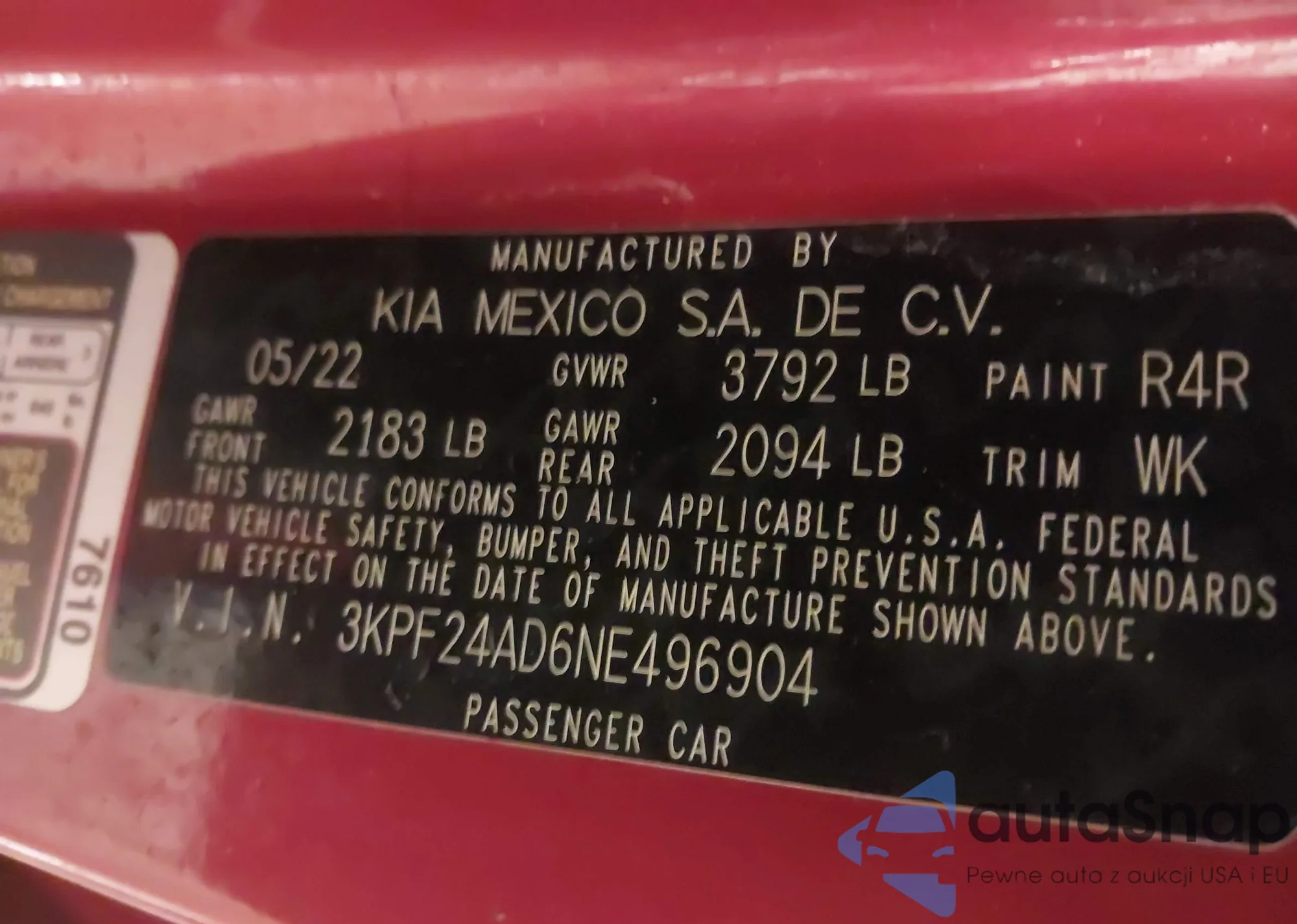 • VIN 3KPF24AD6NE496904