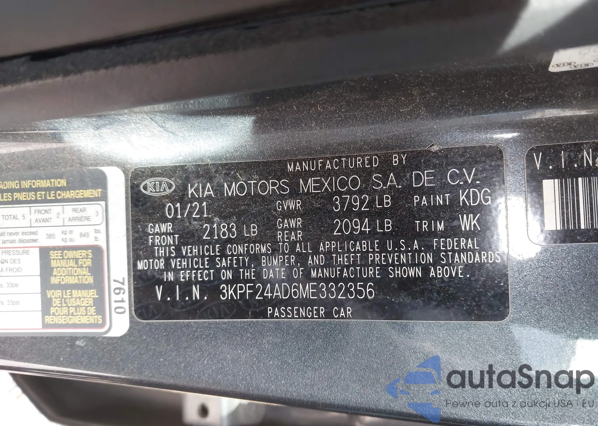 • VIN 3KPF24AD6ME332356
