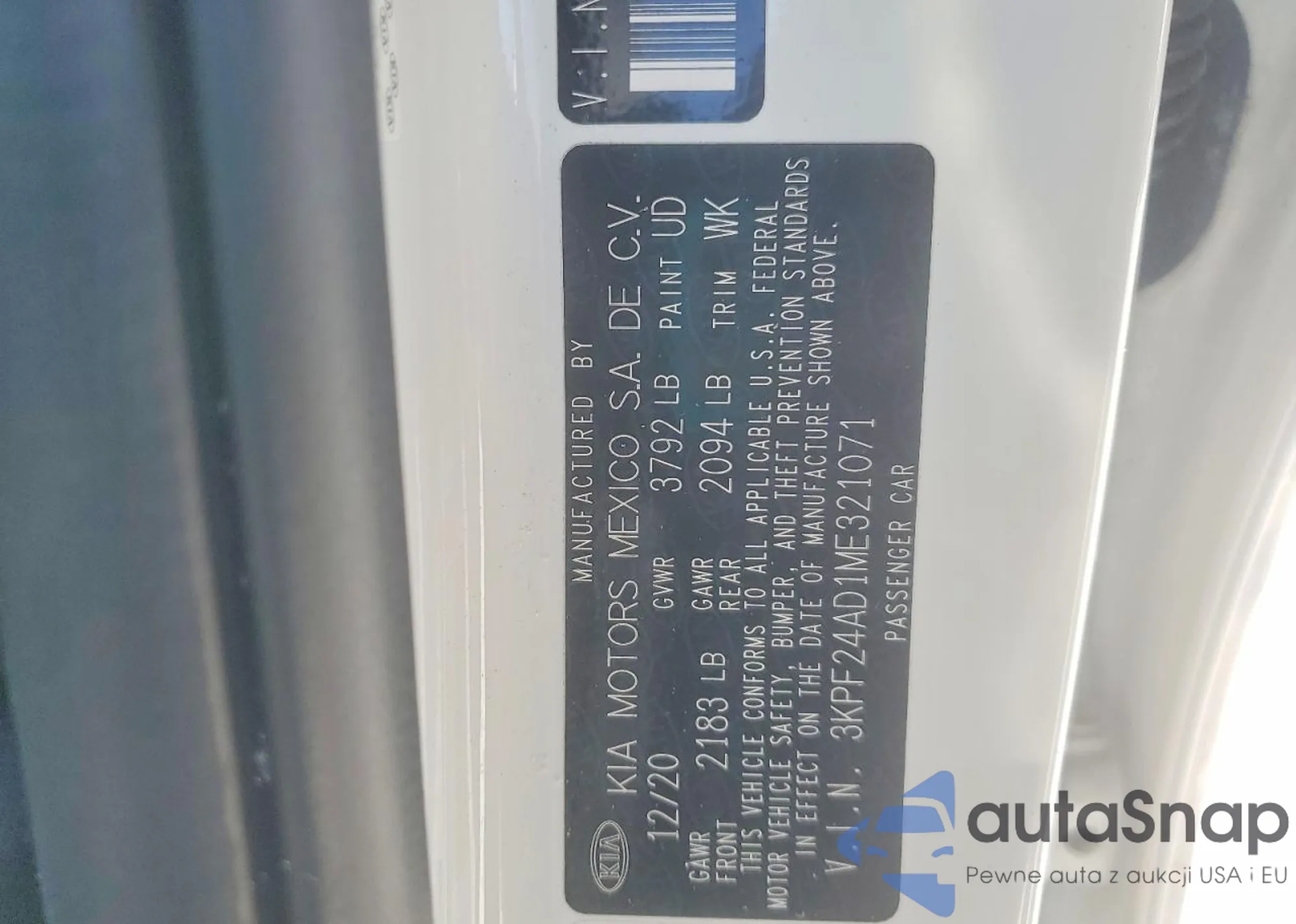• VIN 3KPF24AD1ME321071