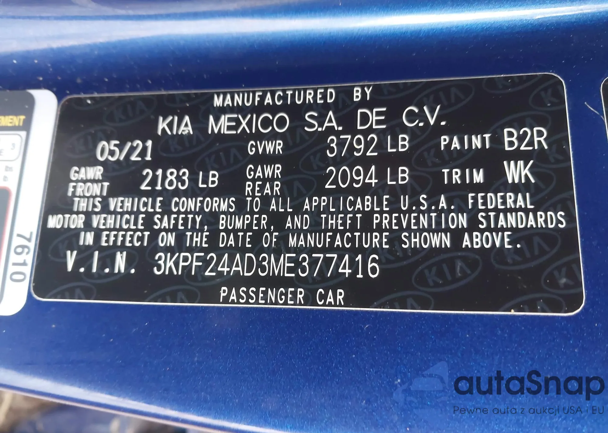 • VIN 3KPF24AD3ME377416