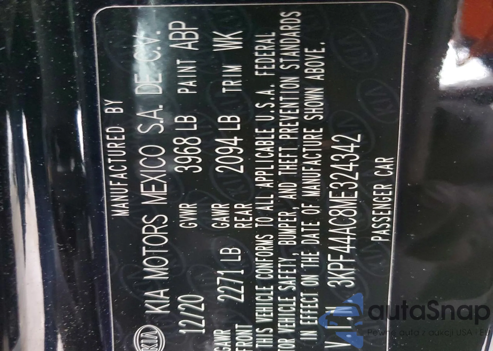• VIN 3KPF44AC8ME324342