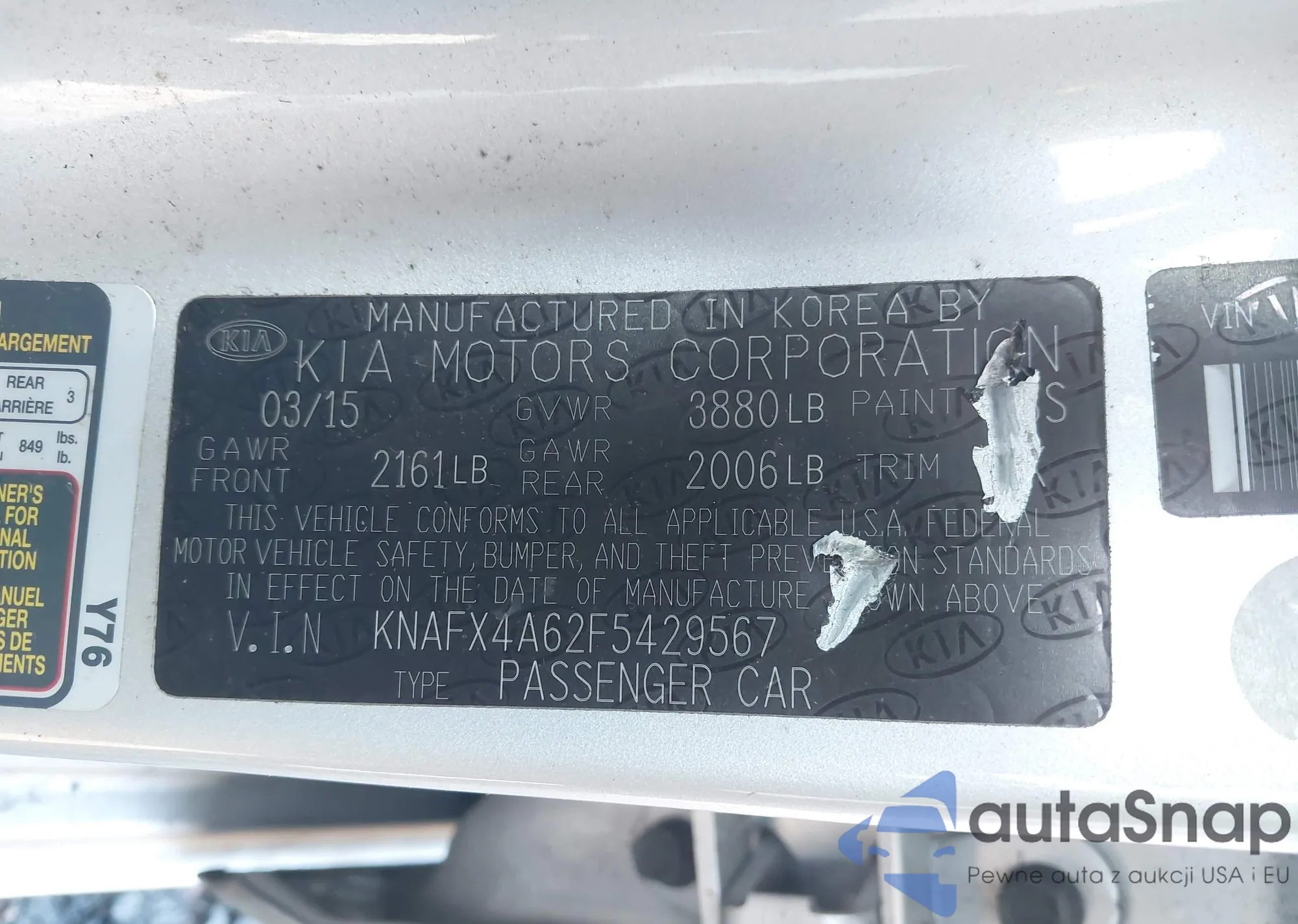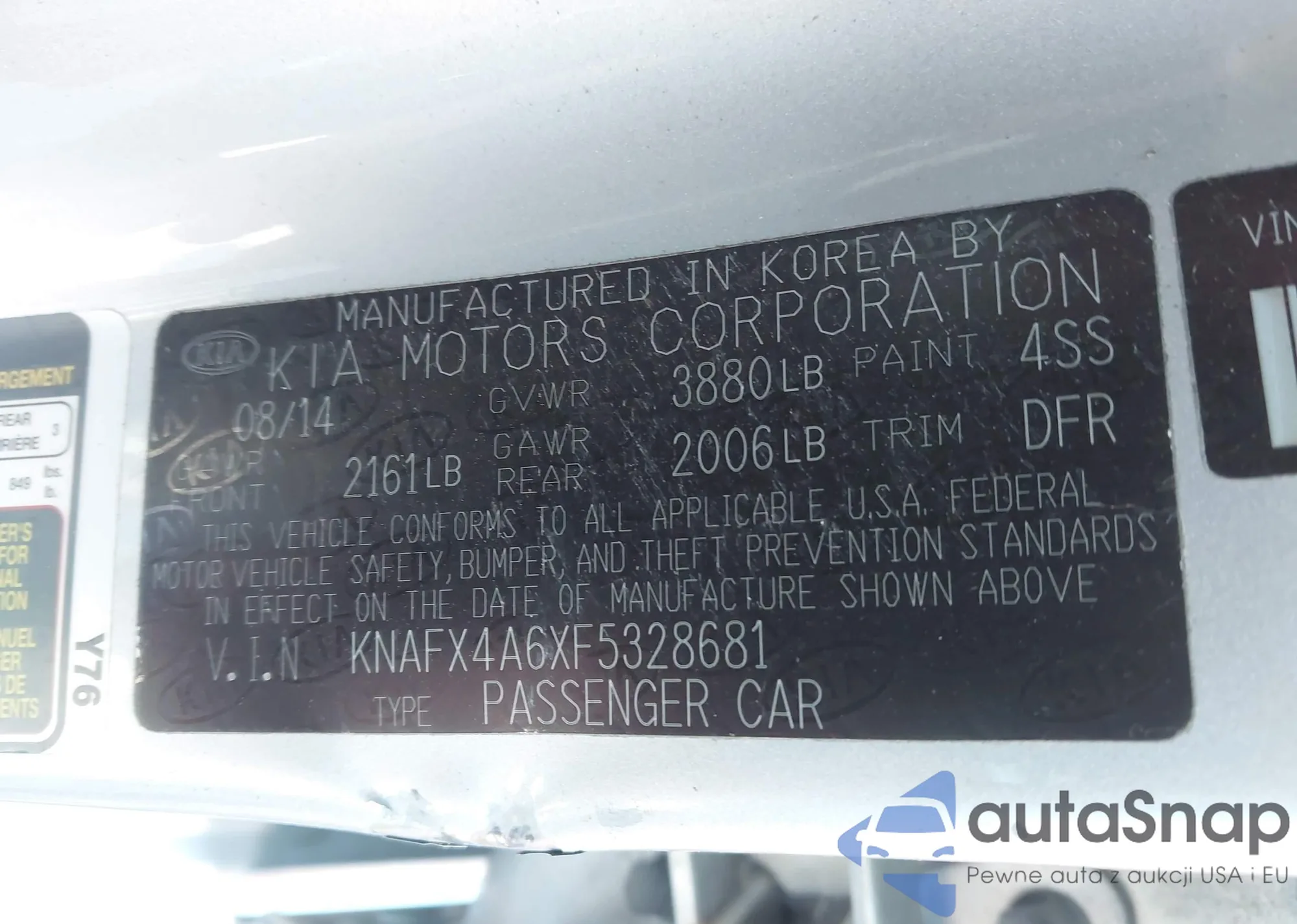 LOT: 44237600 VIN: KNAFX4A6XF5328681