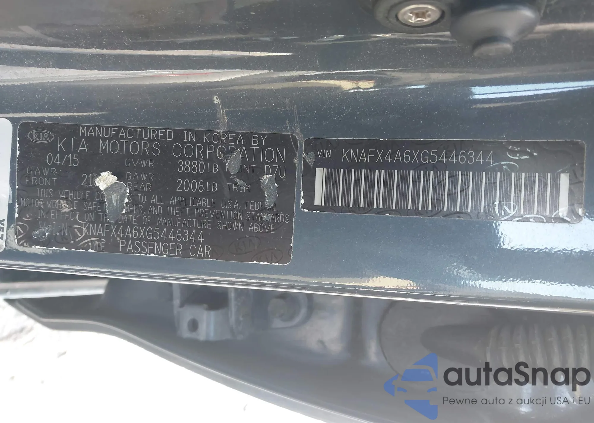 • VIN KNAFX4A6XG5446344