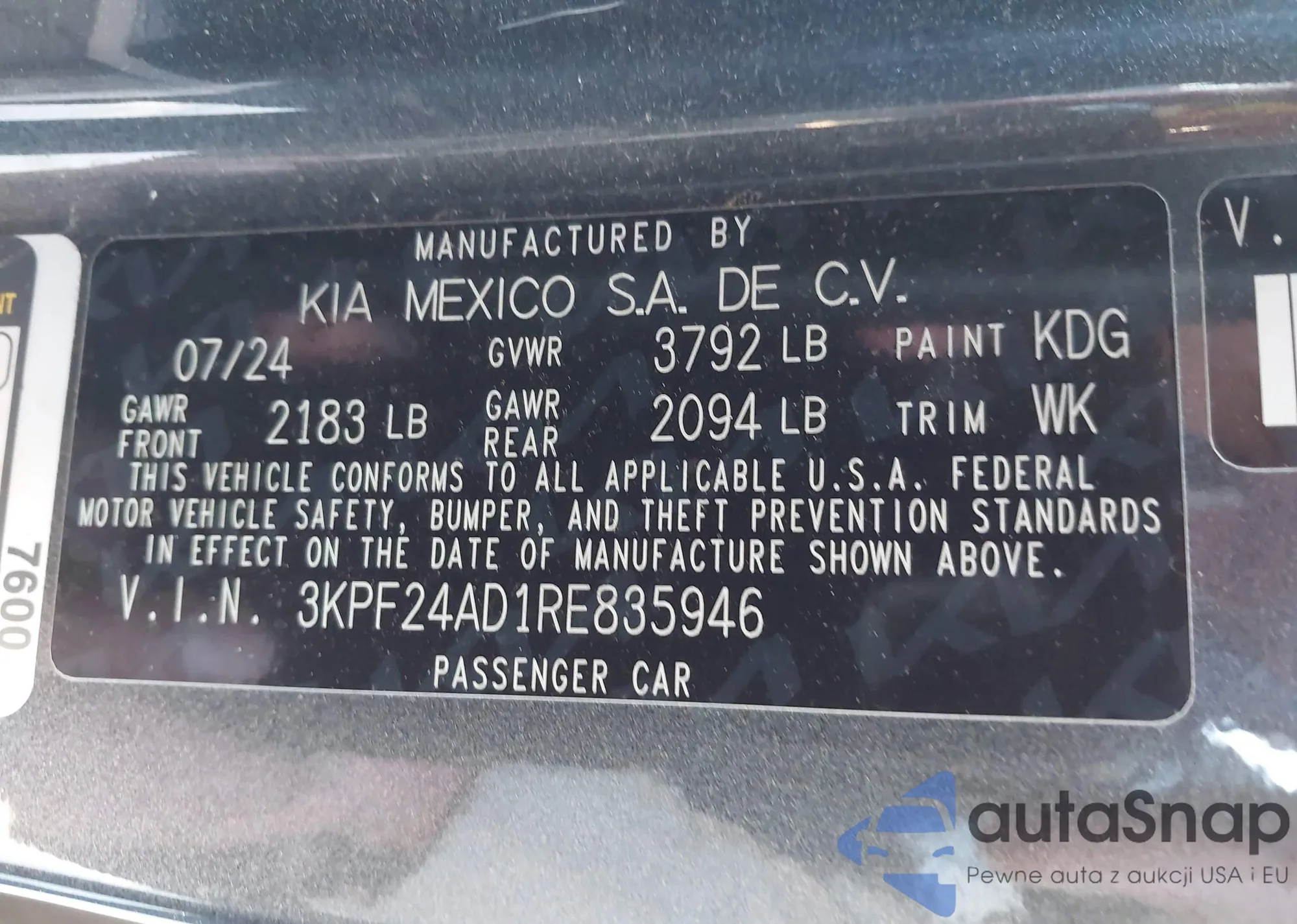 • VIN 3KPF24AD1RE835946