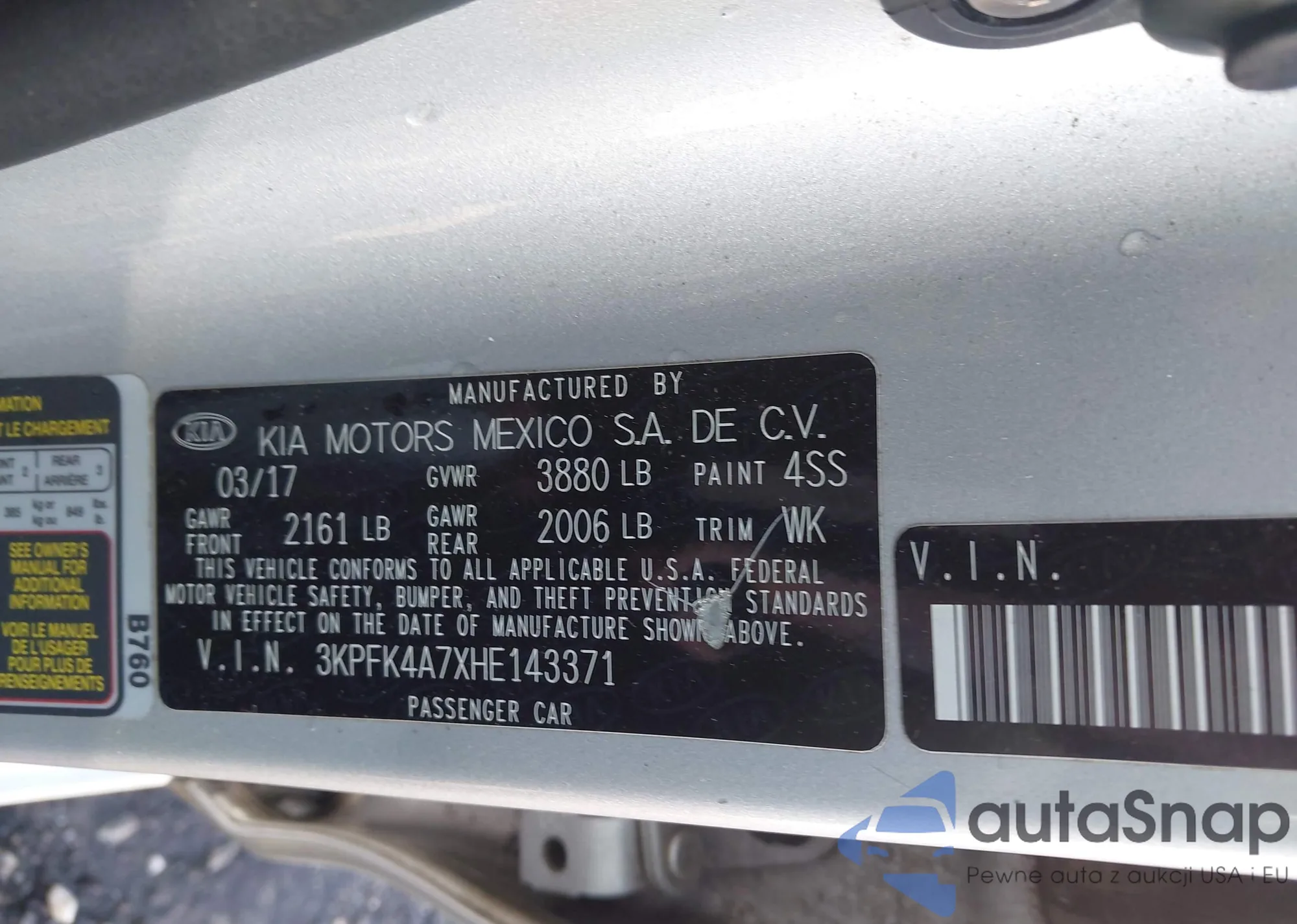 • VIN 3KPFK4A7XHE143371