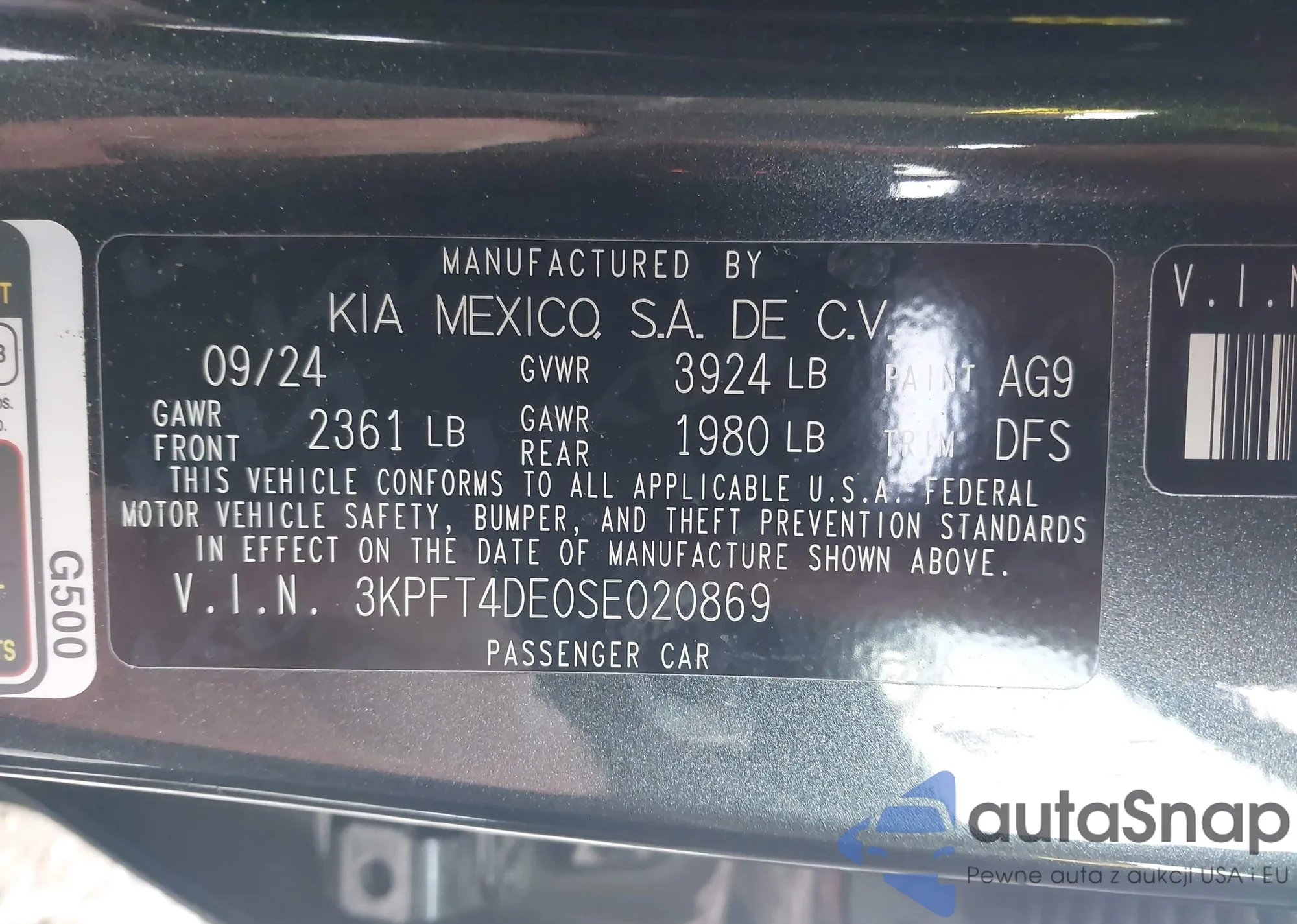 LOT: 44226896 VIN: 3KPFT4DE3SE039819