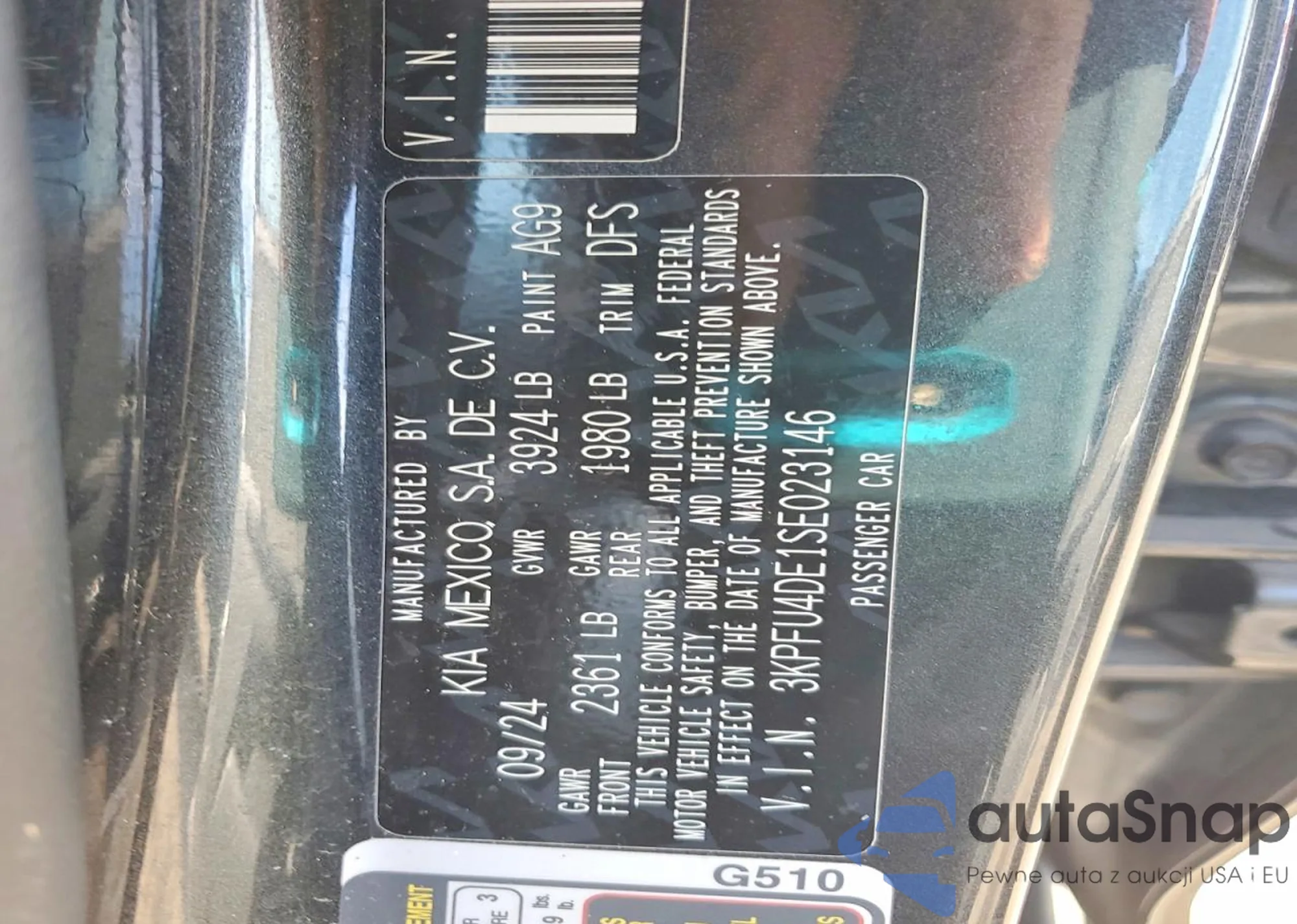 • VIN 3KPFT4DE6SE083927