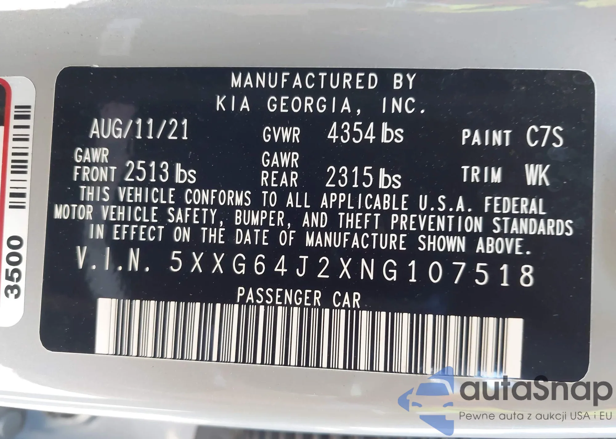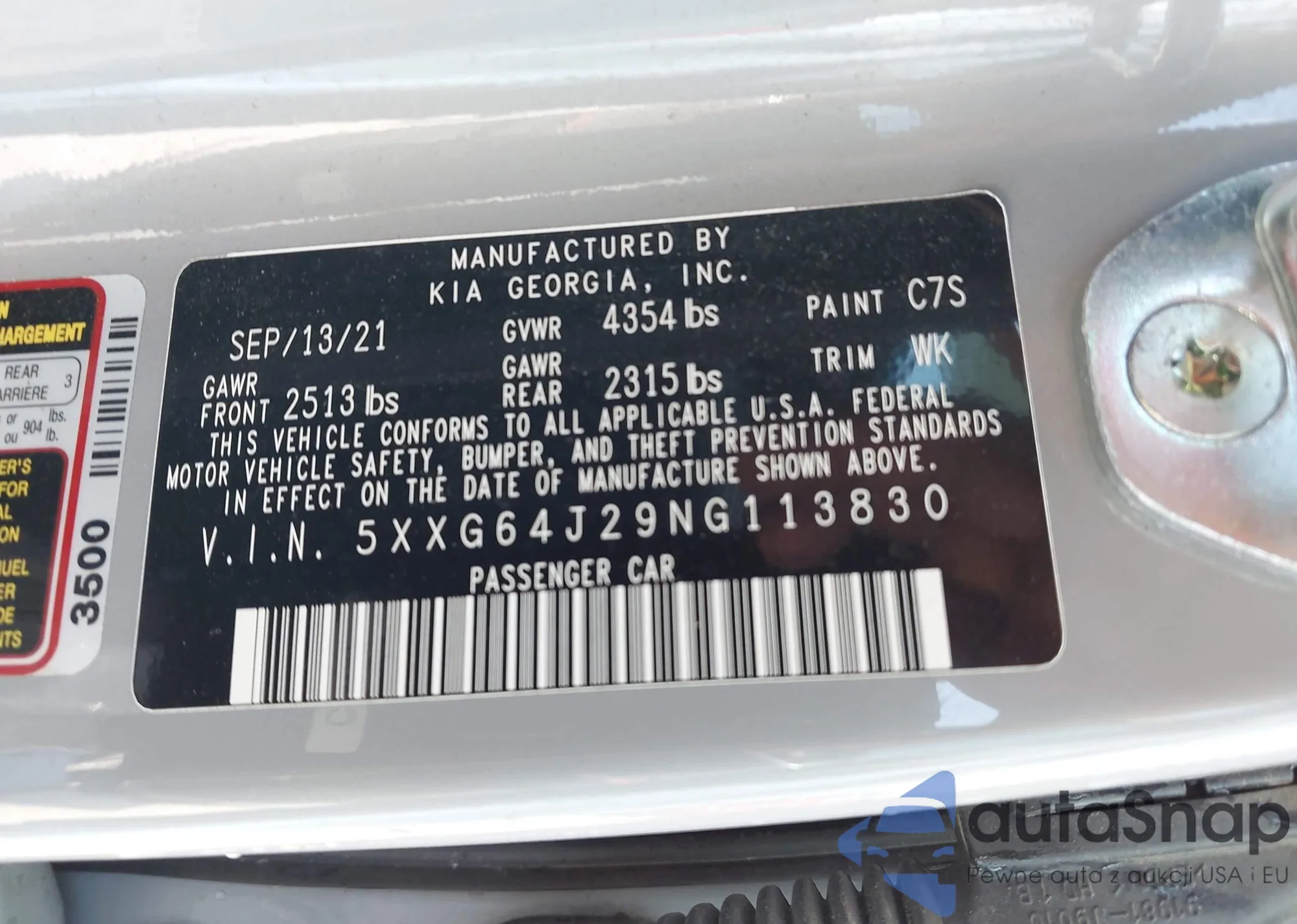 • VIN 5XXG64J2XNG107518