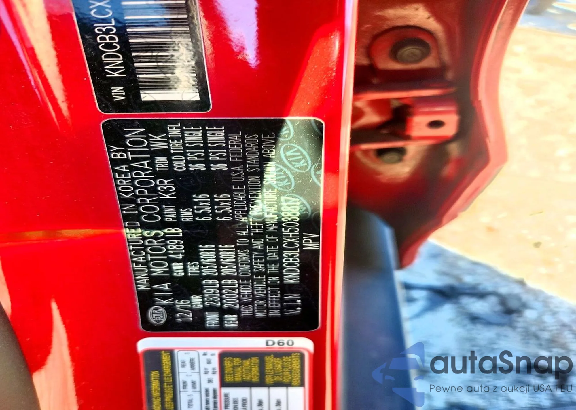 • VIN KNDCB3LCXH5038817