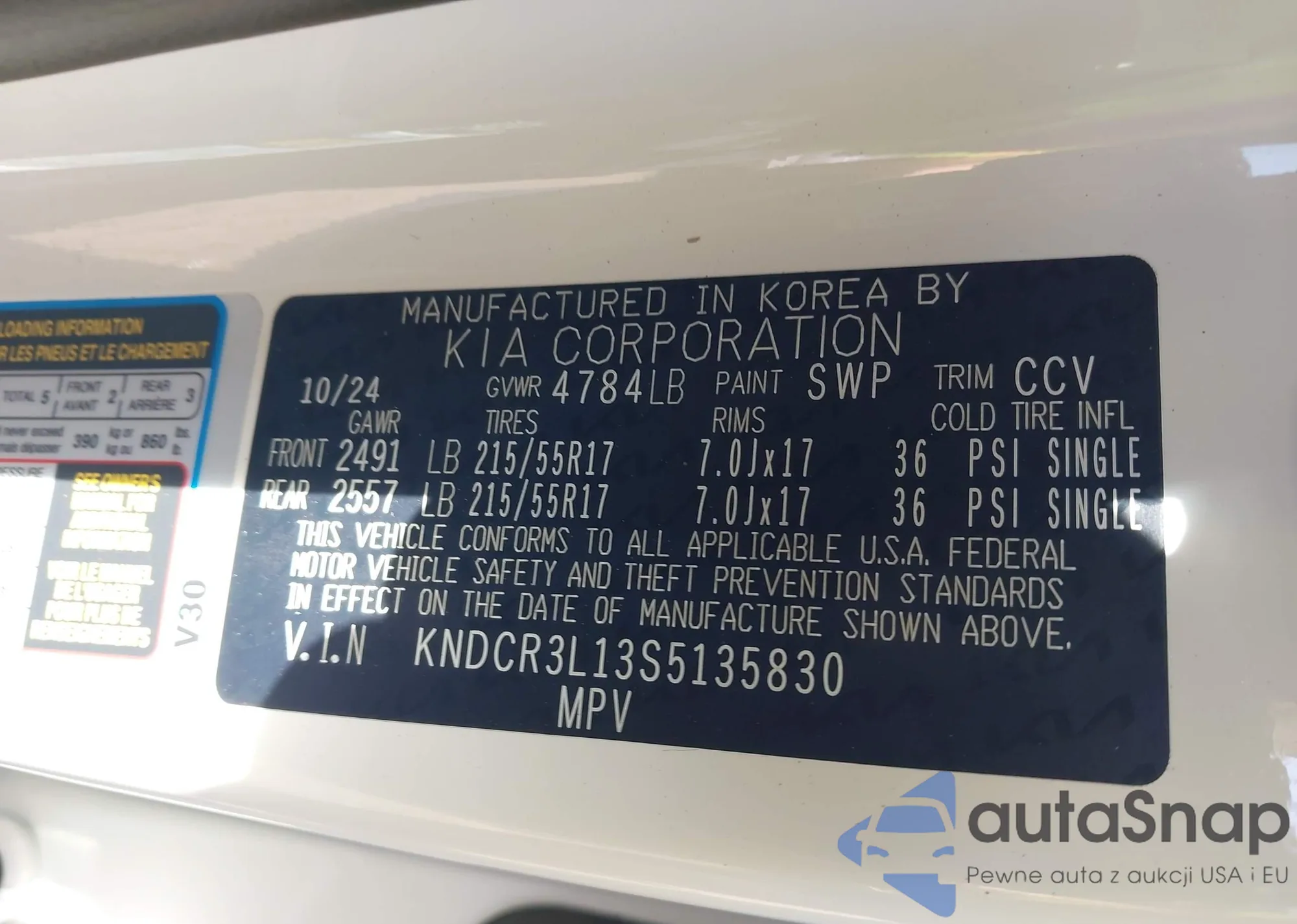 • VIN KNDCR3L13S5135830