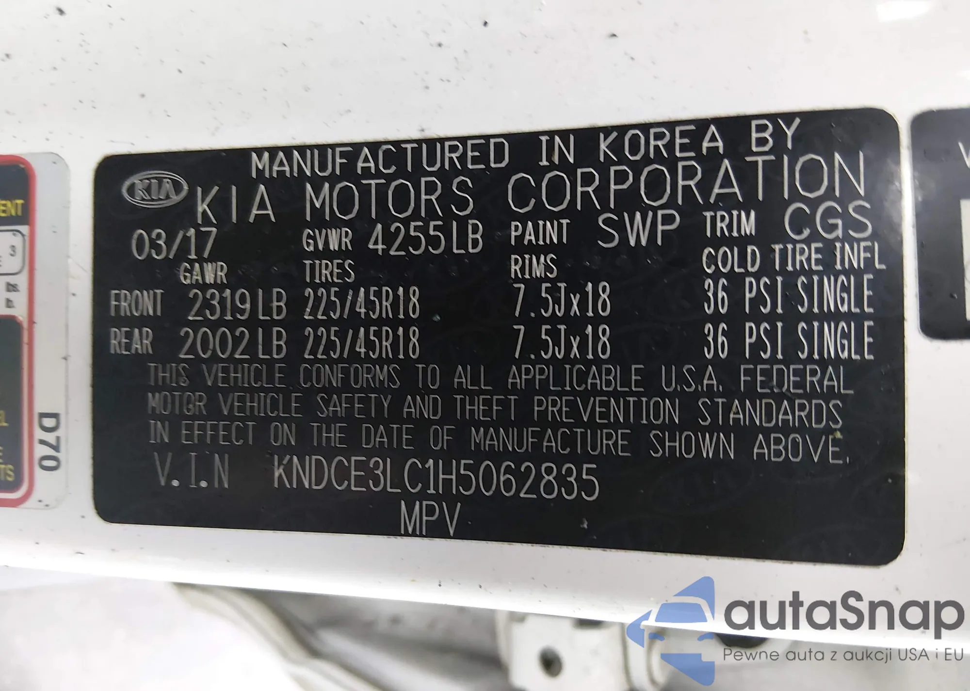 • VIN KNDCE3LC1H5062835