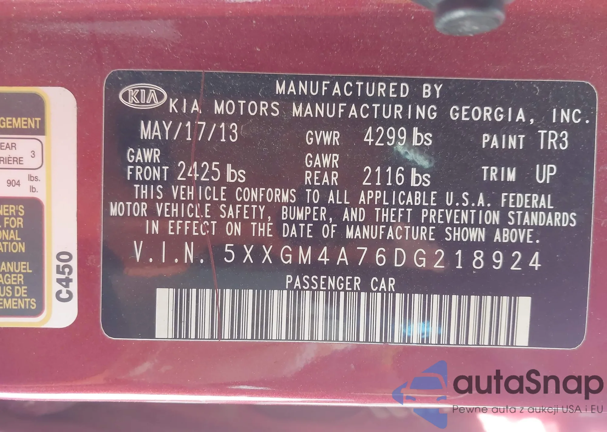 • VIN 5XXGN4A78DG235916