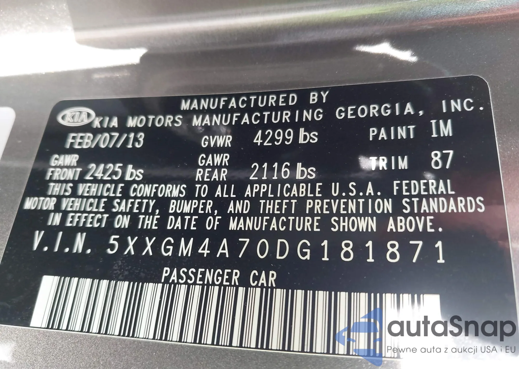 • VIN 5XXGM4A70DG181871