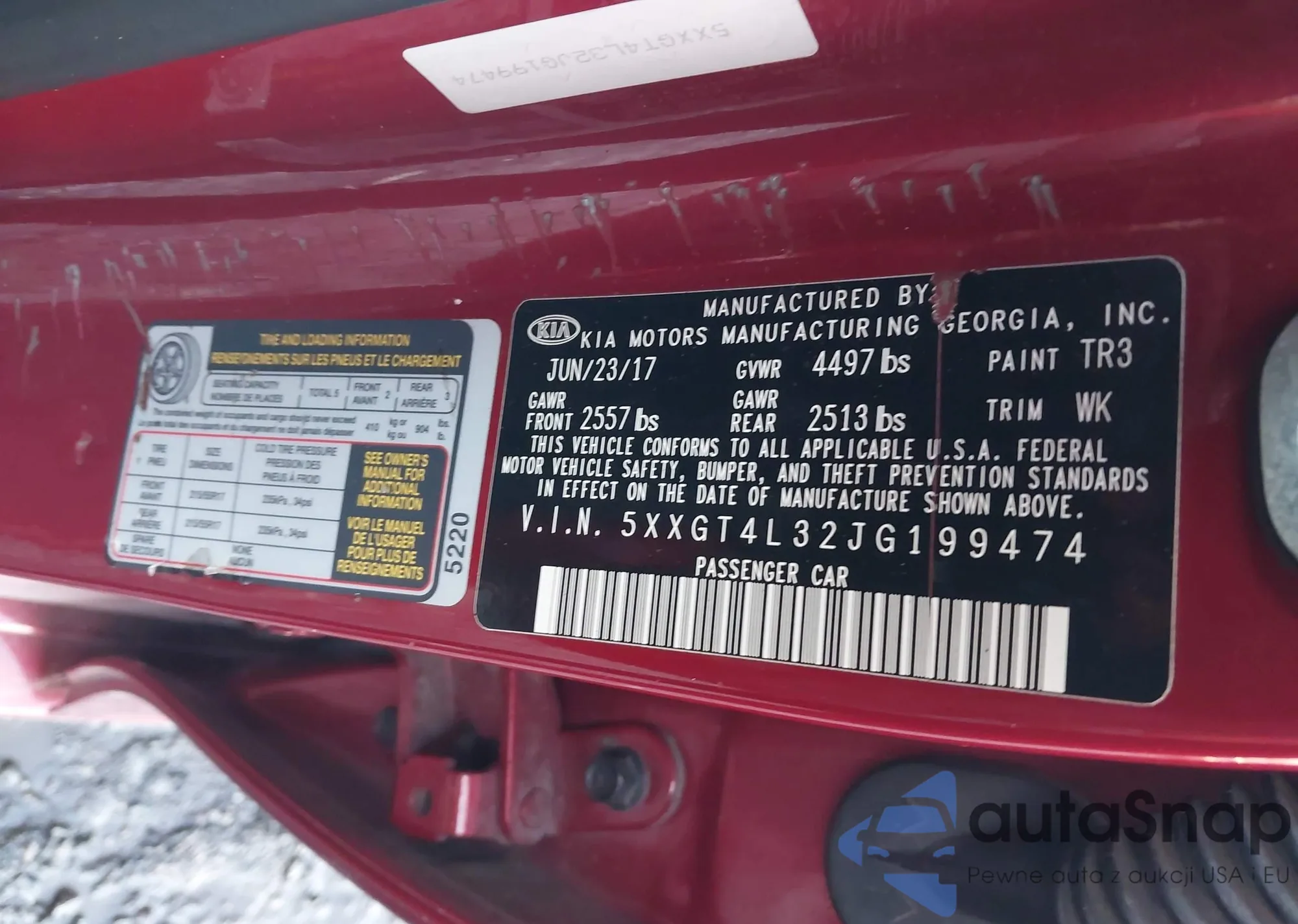LOT: 43773427 VIN: 5XXGT4L34JG267158