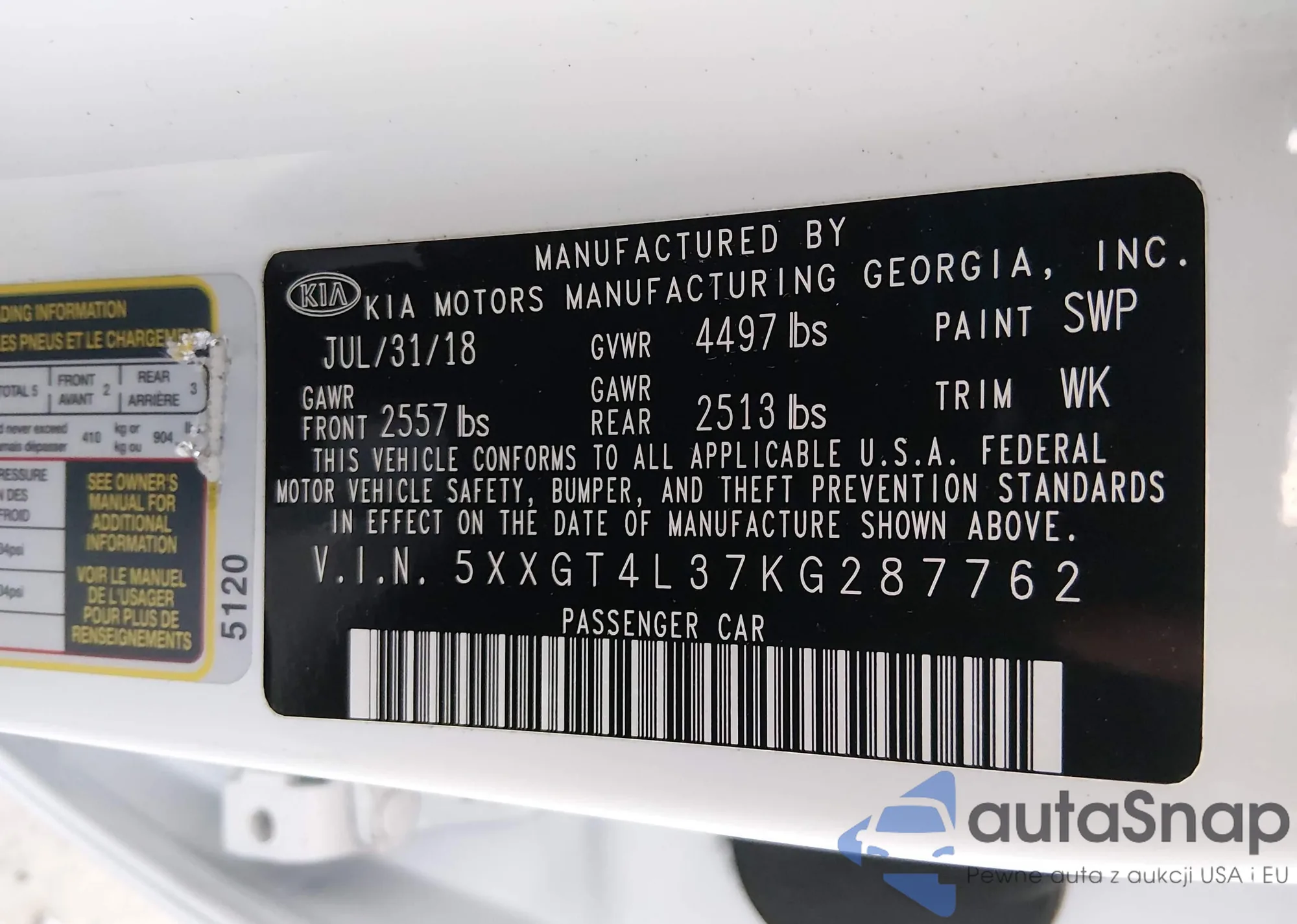 • VIN 5XXGT4L37KG287762