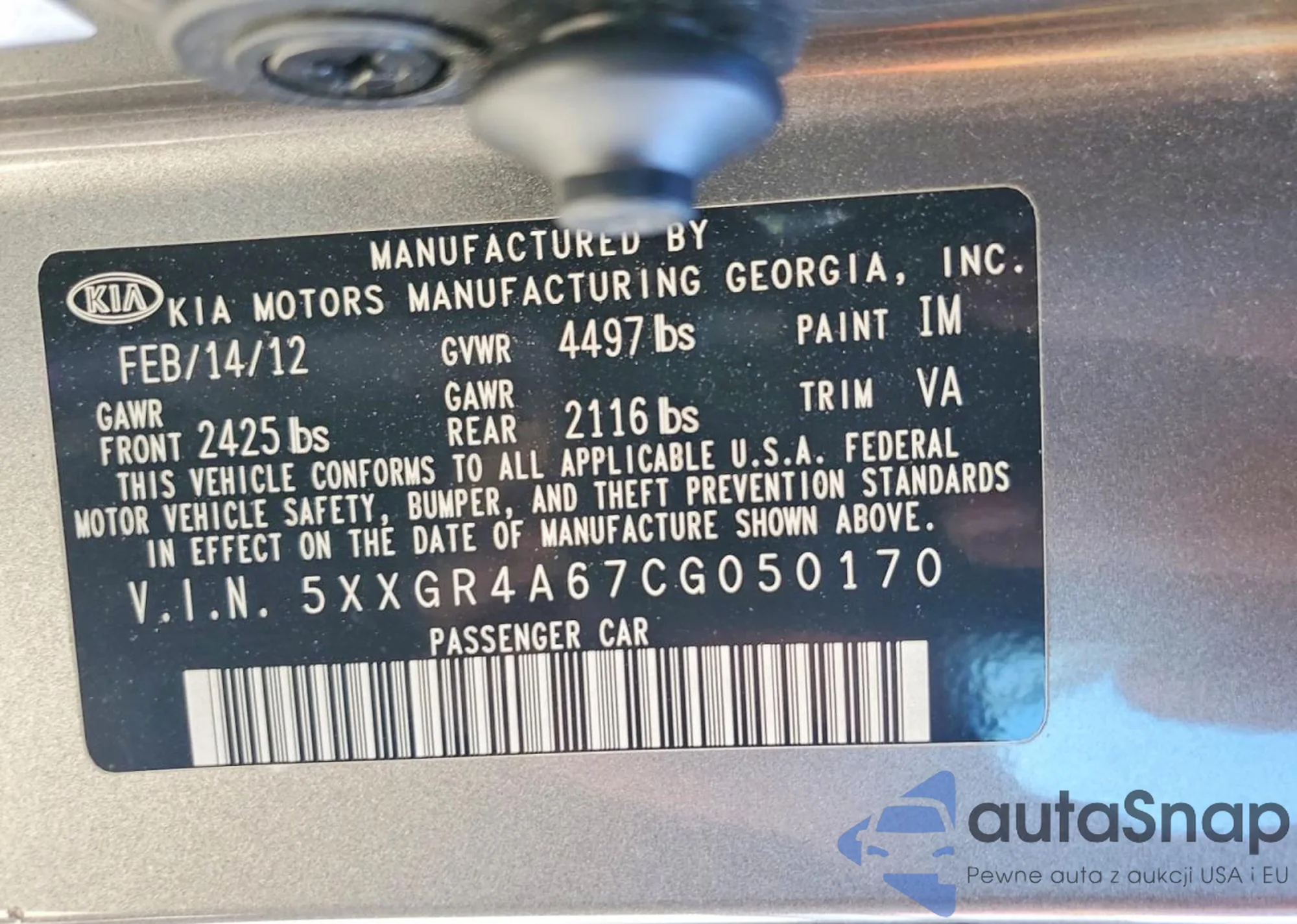 • VIN 5XXGR4A67CG050170