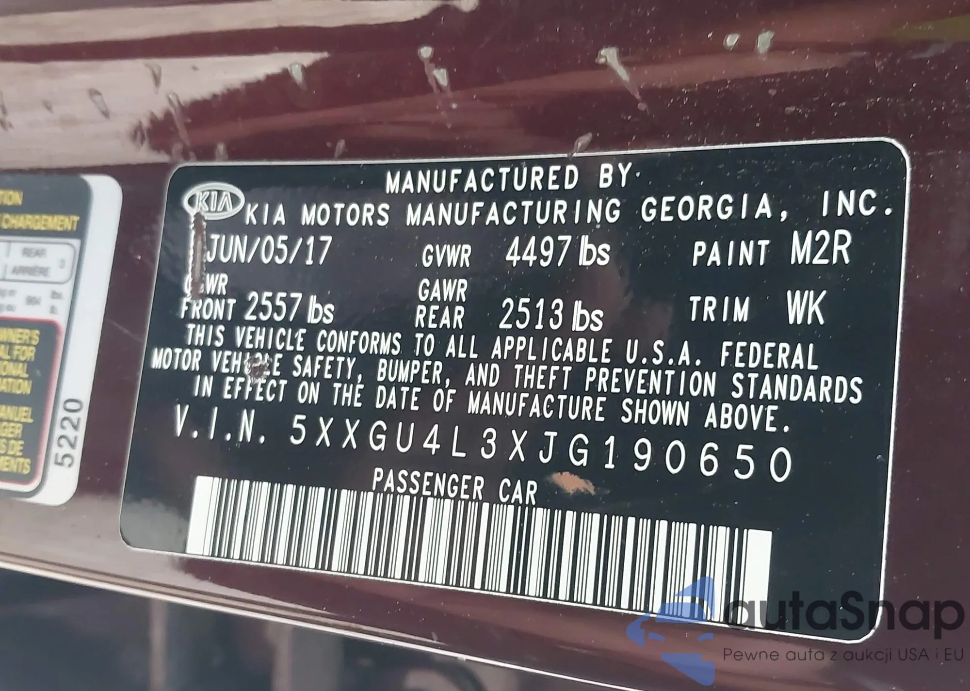 • VIN 5XXGU4L3XJG190650
