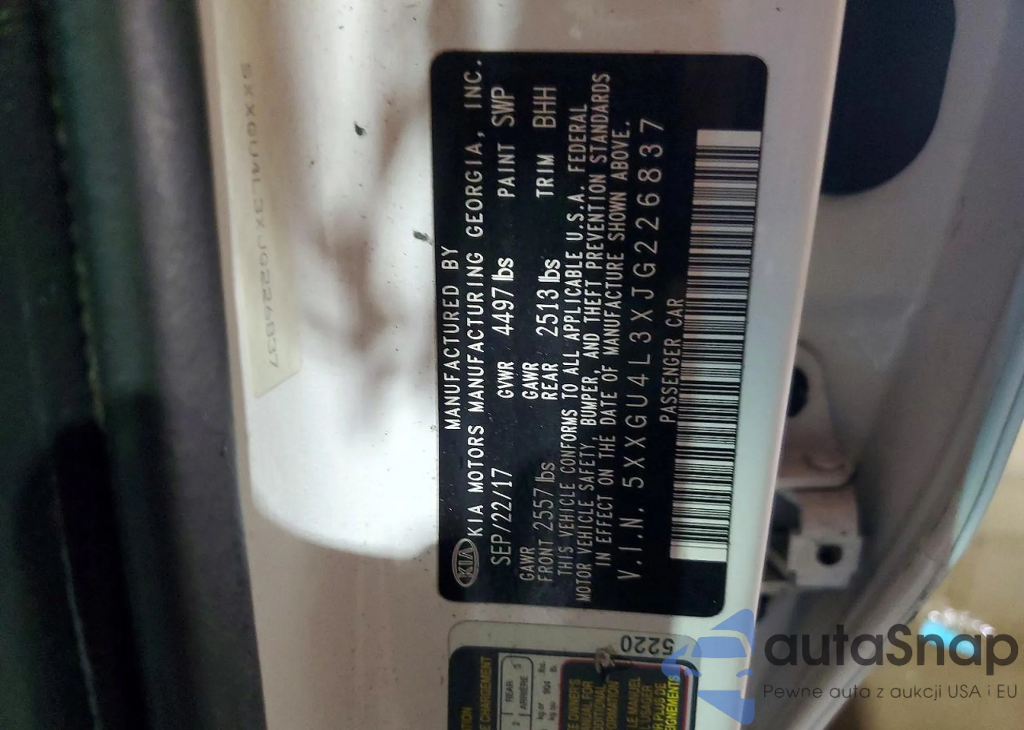 • VIN 5XXGU4L3XJG226837