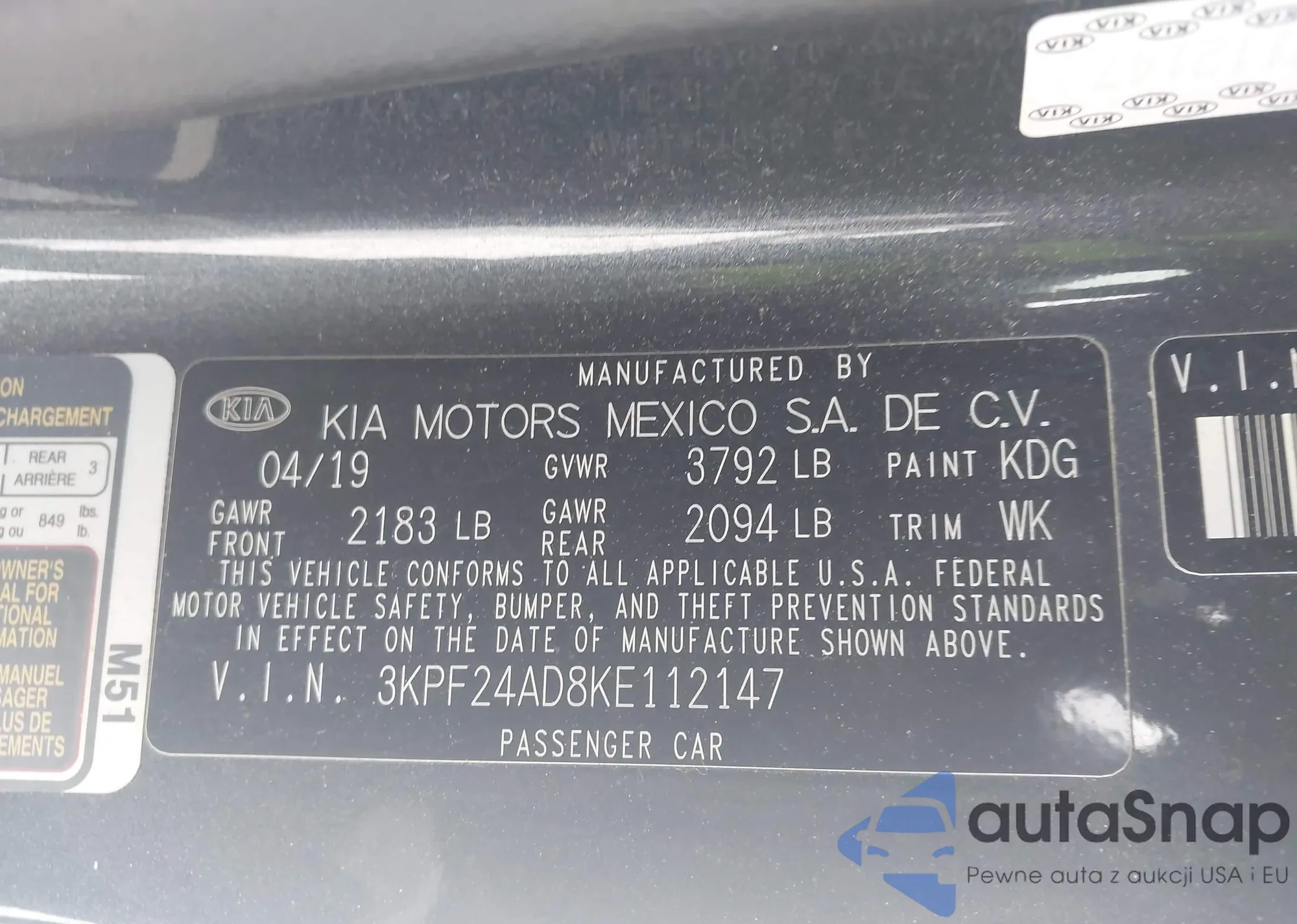 • VIN 3KPF24AD8KE112147