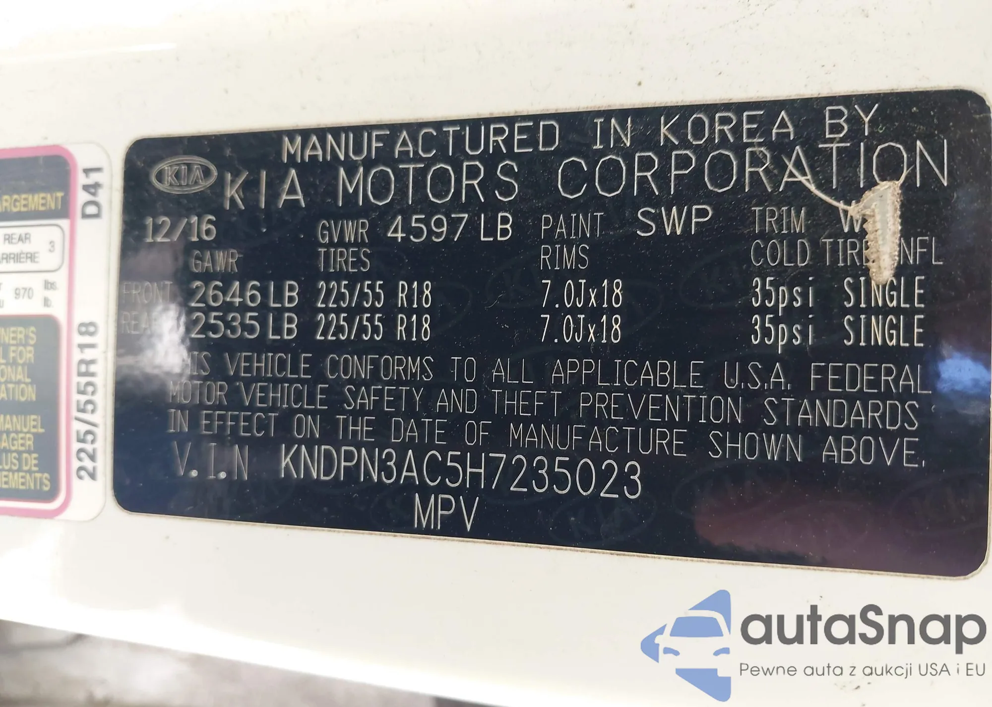• VIN KNDPN3AC5H7235023