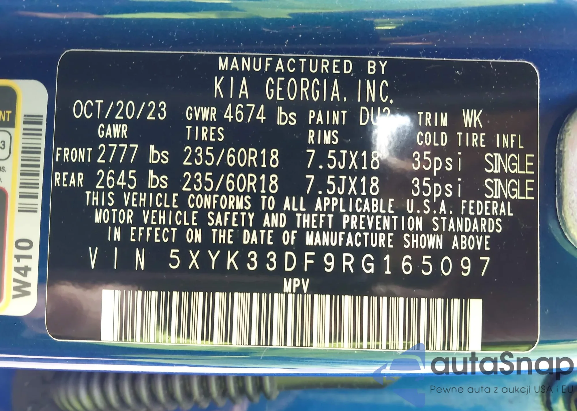 • VIN 5XYK33DF9RG165097