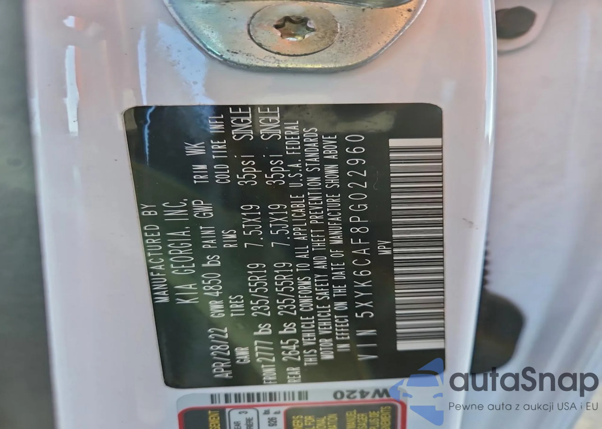 • VIN 5XYK6CAF8PG022960