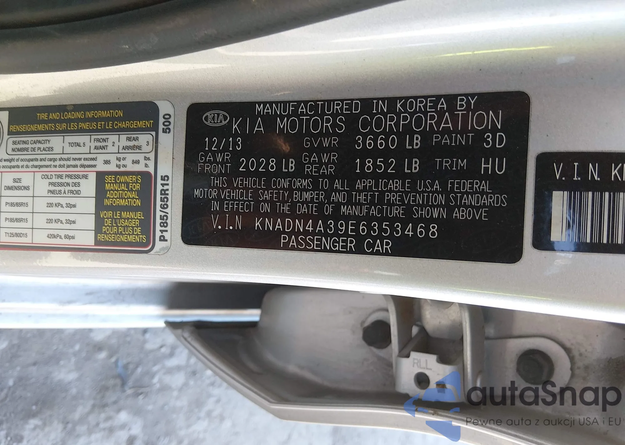 • VIN KNADN4A39E6353468