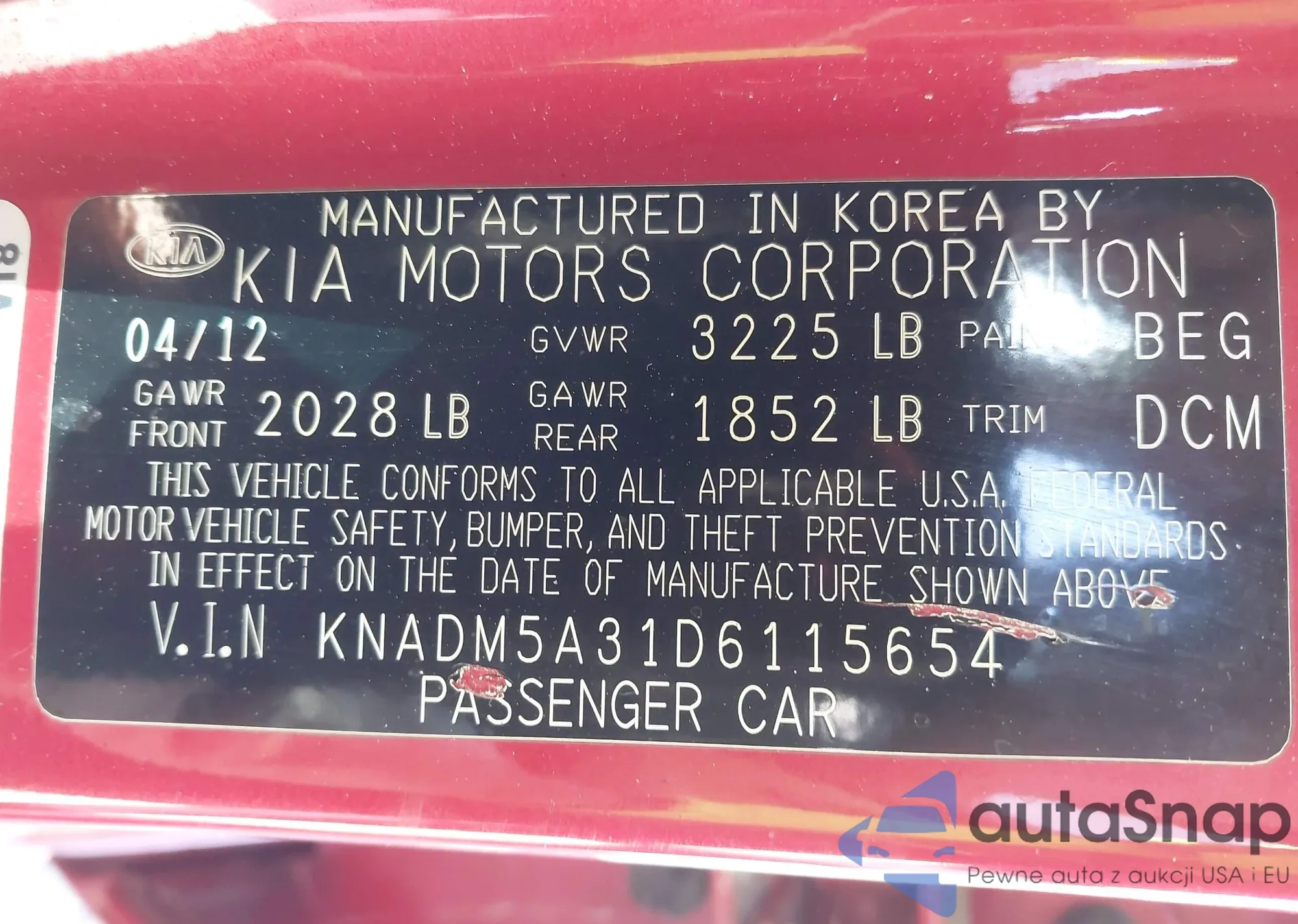 • VIN KNADM5A33D6288706