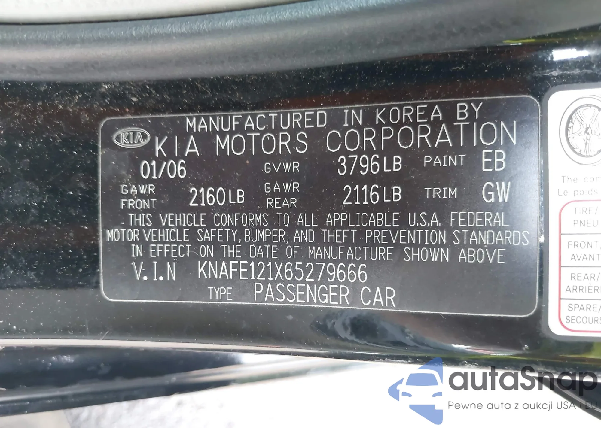 LOT: 44307190 VIN: KNAFB121635267325