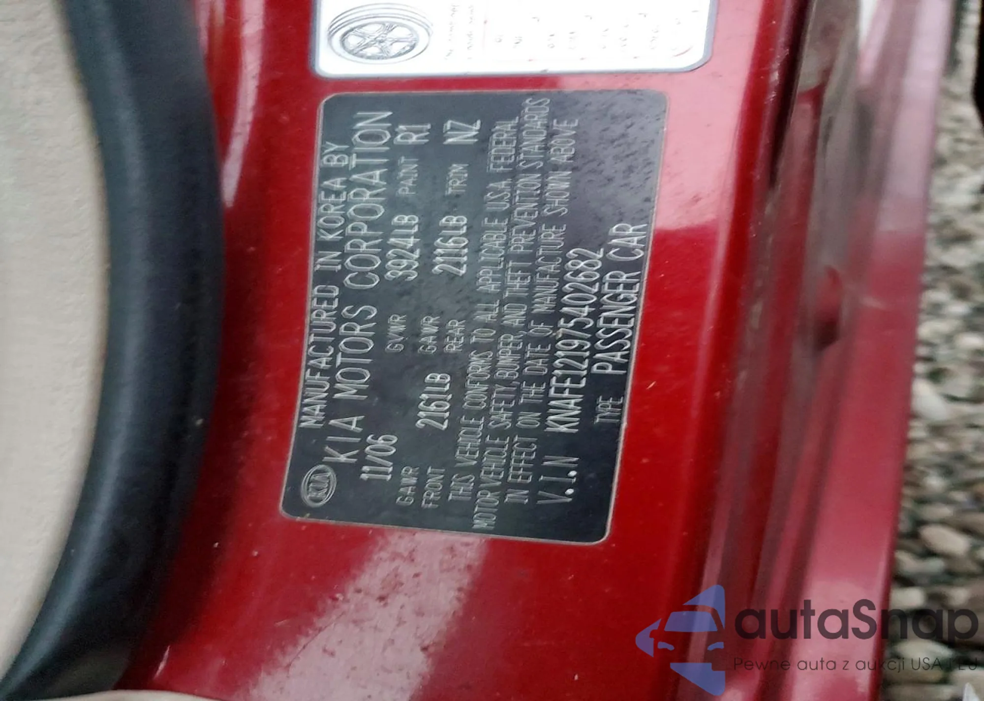 LOT: 44292977 VIN: KNAFE122375485907