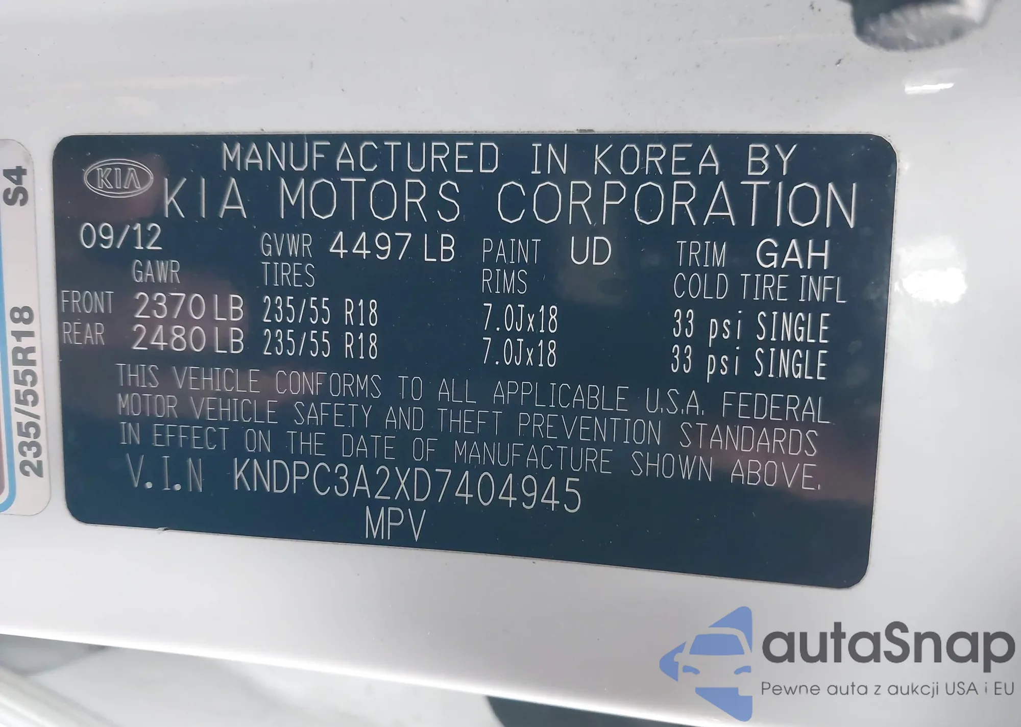 • VIN KNDPC3A2XD7404945