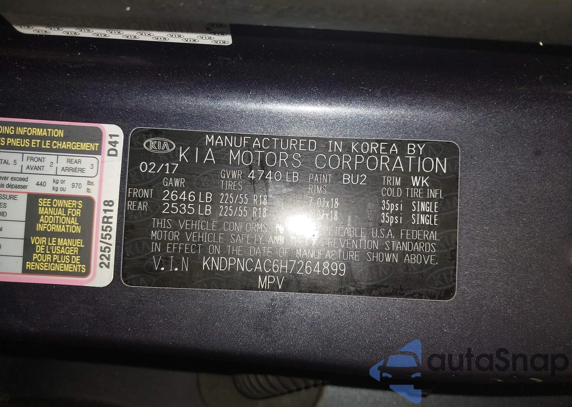 • VIN KNDPNCAC6H7264899