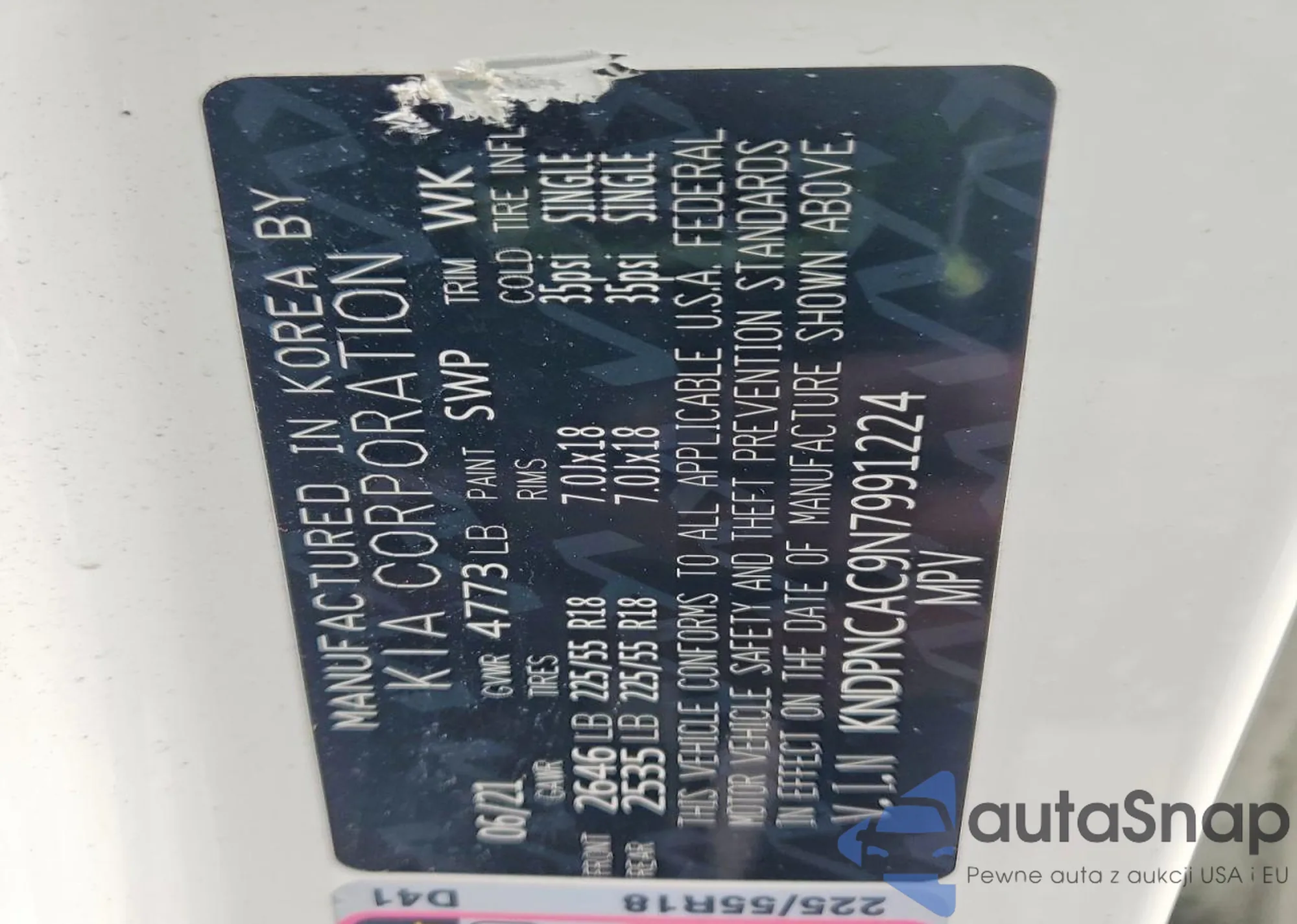 • VIN KNDPNCAC9N7991224
